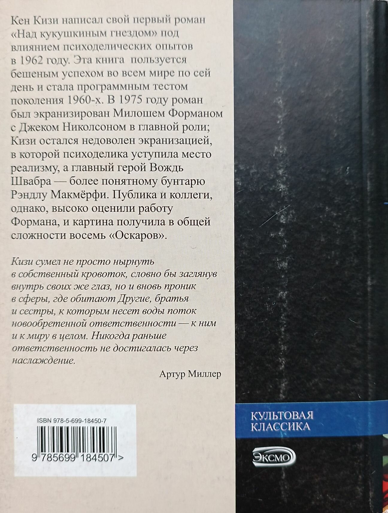 Кен Кизи написал свой первый роман "Над кукушкиным гнездом" под влиянием психоделических опытов в 1962 году. Эта книга пользуется бешеным успехом во всем мире по сей день и стала программным тестом поколения 1960-х. В 1975 году роман был экранизирован Милошем Форманом с Джеком Николсоном в главной роли; Кизи остался недоволен экранизацией, в которой психоделика уступила место реализму, а главный герой Вождь Швабра - более понятному бунтарю Рэндлу Макмерфи. Публика и коллеги, однако, высоко оценили работу Формана, и картина получила в общей сложности восемь "Оскаров". "Кизи сумел не просто нырнуть в собственный кровоток, словно бы заглянув внутрь своих же глаз, но и вновь проник в сферы, где обитают Другие, братья и сестры, к которым несет воды поток новообретенной ответственности - к ним и к миру в целом. Никогда раньше ответственность не достигалась через наслаждение". Артур Миллер Мягкая обложка, бумага офсетная.