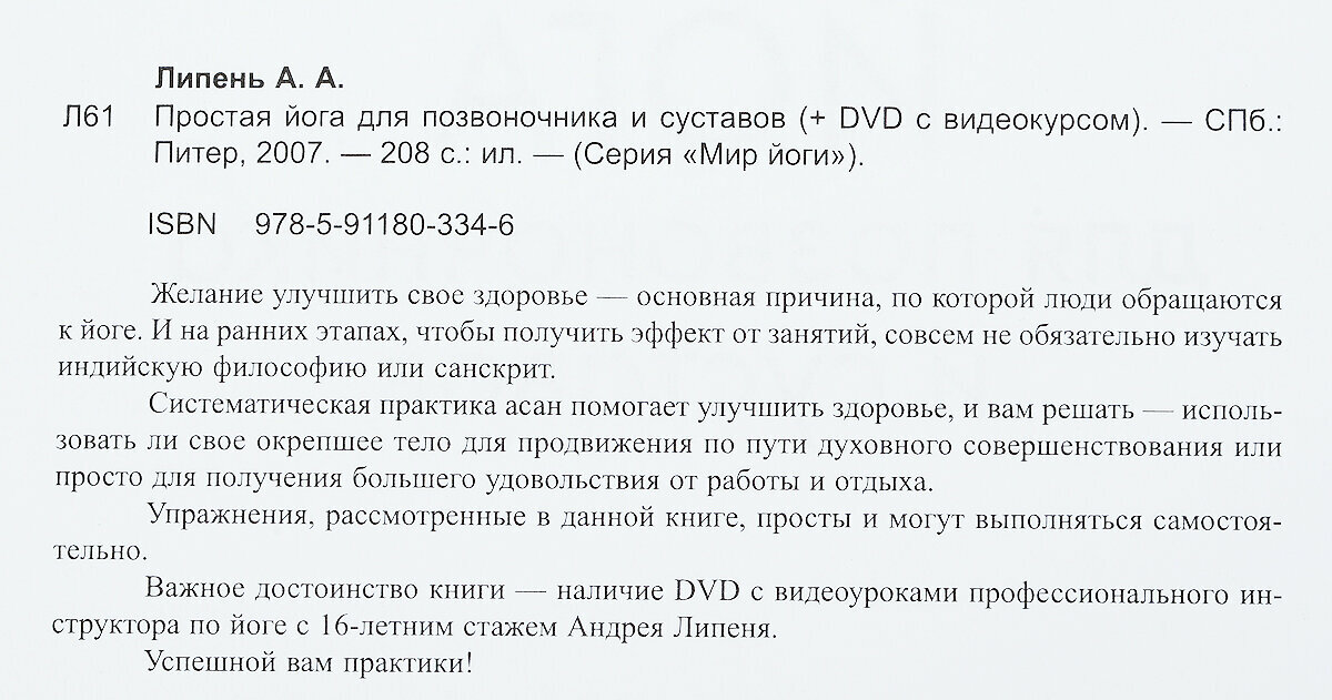 Сервис сравнения цен СкидкаГИД предлагает сравнить цены на товар «Книга: Простая йога для позвоночника и суставов (+ DVD) (Липень Андрей Анатольевич); Питер, 2008»