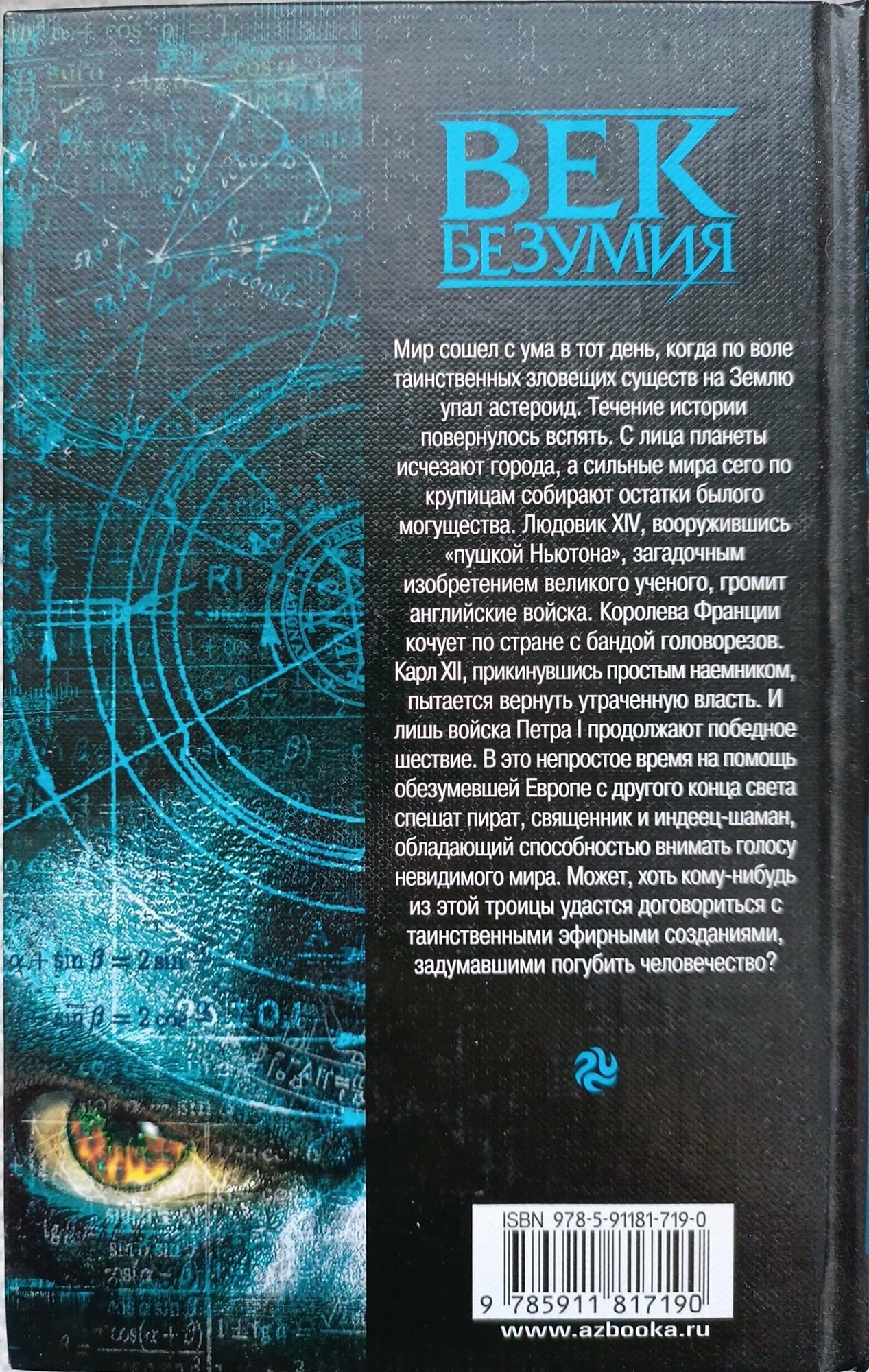 Один из самых ярких циклов знаменитого мастера фантастического романа Грегори Киза! Впервые полностью публикуется на русском языке! Век Безумия начался с того ужасного дня, когда по воле таинственных зловещих существ на Землю упал астероид. Эта трагедия не только изменила ход истории, но и поставила под угрозу судьбу человечества. Теперь лишь наука способна спасти людей. Сэр Исаак Ньютон, обратив свой пронзающий пространство и время разум к древнему искусству алхимиков, получает Философскую ртуть - первоисточник материи, ключ, инициирующий взаимодействие четырех элементов: земли, воздуха, огня, воды. Вместе с юным учеником печатника Бенджамином Франклином они пытаются выведать сокровенные тайны созданий, населяющих эфир и обладающих огромной силой, властью и знаниями. Это опасное занятие становится еще более опасным, когда в науку вмешивается политика в лице Людовика XIV, Петра I и Карла XII. Пока сильные мира сего борются за власть, существа, в равной мере презирающие и науку, и человечество, желают избавиться от обоих объектов своего презрения.