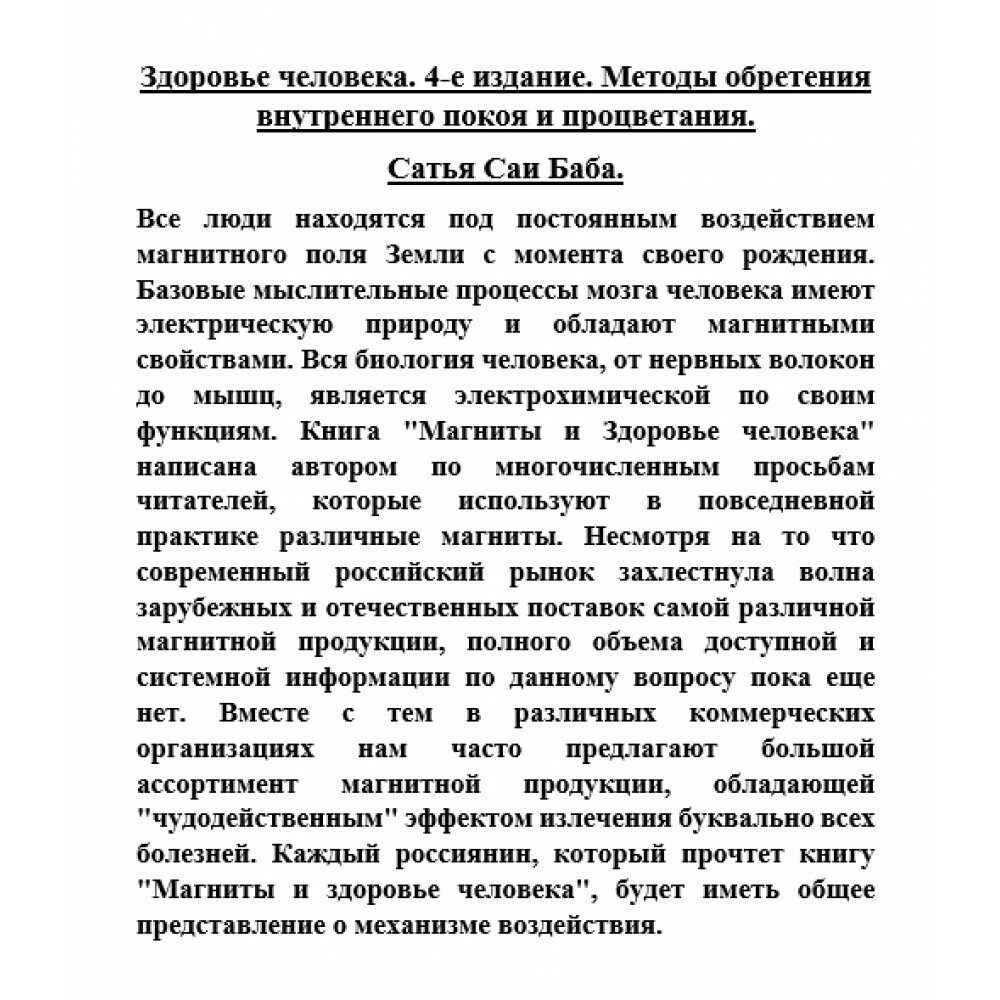 Сервис сравнения цен СкидкаГИД предлагает сравнить цены на товар «Книга: Здоровье человека. Методы обретения внутреннего покоя и процветания (Бхагаван Шри Сатья Саи Баба); Амрита, 2008»