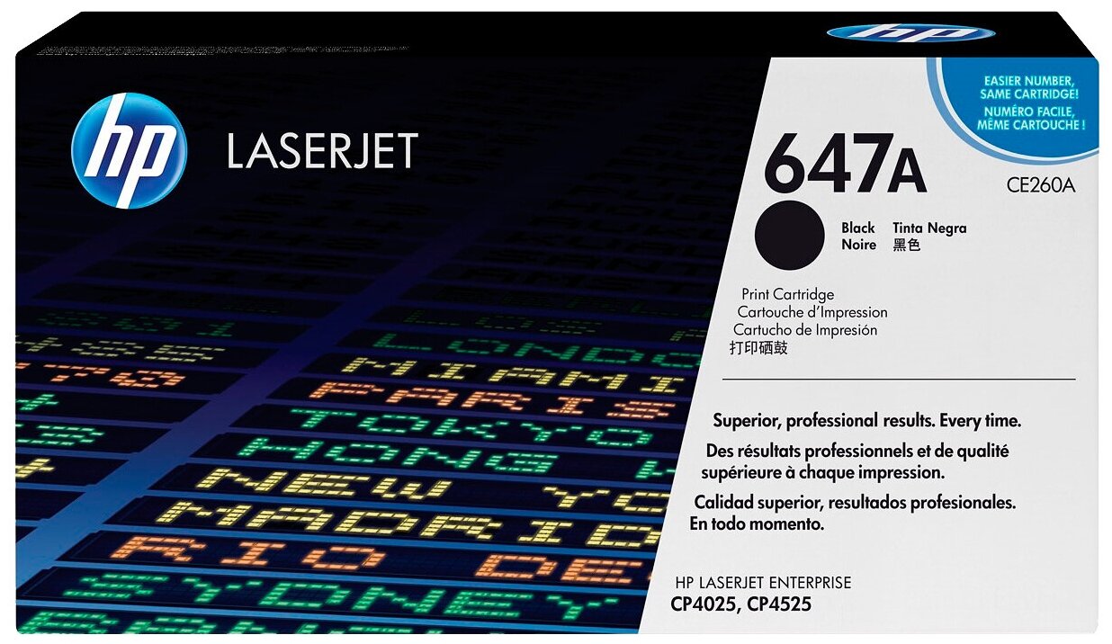 - HP 647A (CE260A) BLACK 8,500 PAGE YIELD REPLACEMENT LASERJET TONER CARTRIDGE