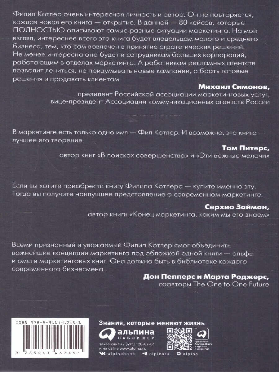 Маркетинг от А до Я: 80 концепций которые должен знать каждый менеджер (Филип Котлер); Альпина Паблишер, 2018