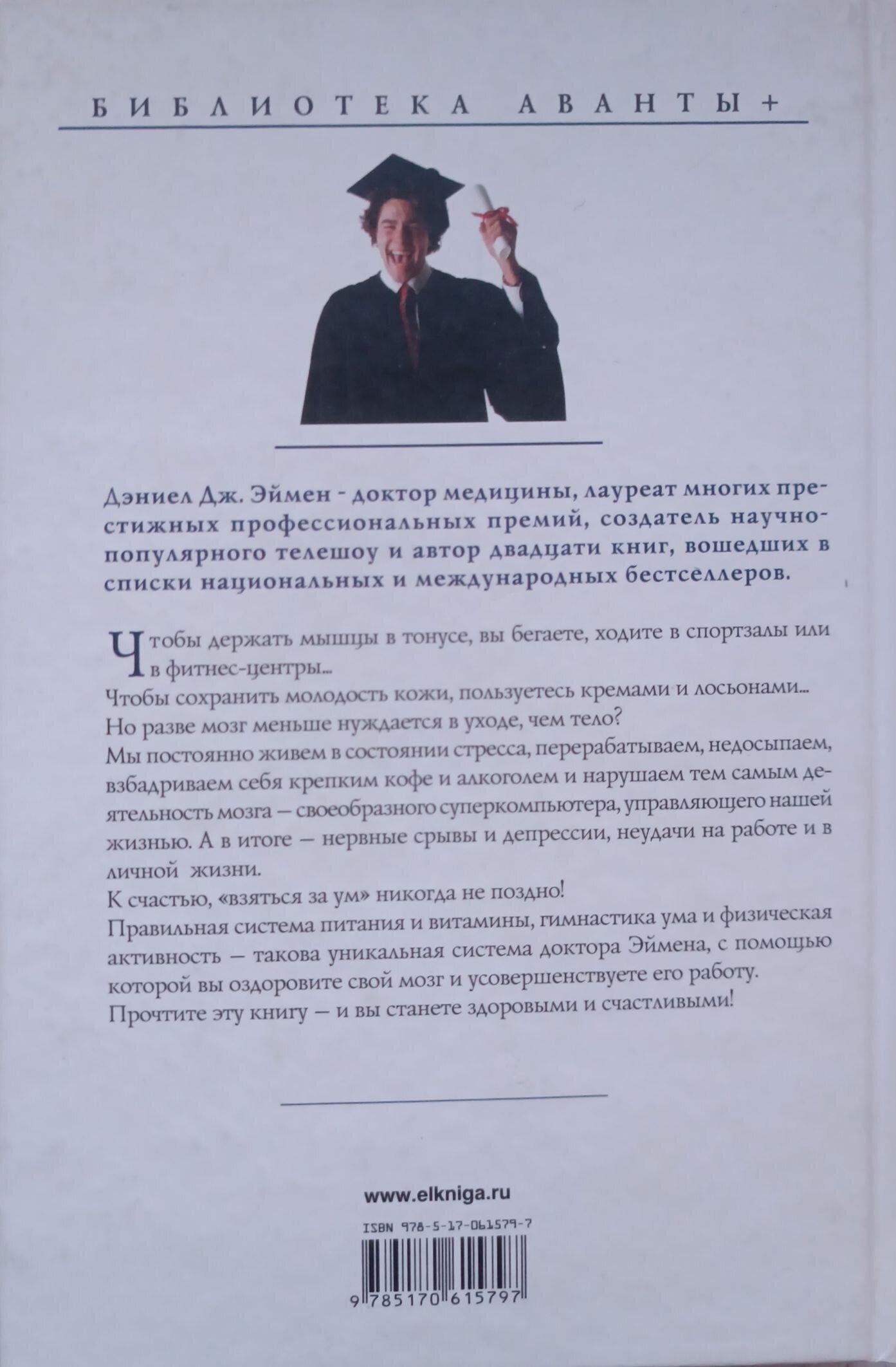 Чтобы держать мышцы в тонусе, вы бегаете, ходите в спортзалы или в фитнес-центры. Чтобы сохранить молодость кожи, пользуетесь кремами и лосьонами. Но разве мозг меньше нуждается в уходе, чем тело? Мы постоянно живем в состоянии стресса, перерабатываем, недосыпаем, взбадриваем себя крепким кофе и алкоголем и нарушаем тем самым деятельность мозга - своеобразного суперкомпьютера, управляющего нашей жизнью. А в итоге - нервные срывы и депрессии, неудачи на работе и в личной жизни. К счастью, "взяться за ум" никогда не поздно! Правильная система питания и витамины, гимнастика ума и физическая активность - такова уникальная система доктора Эймена, с помощью которой вы оздоровите свой мозг и усовершенствуете его работу. Прочтите эту книгу - и вы станете здоровыми и счастливыми!