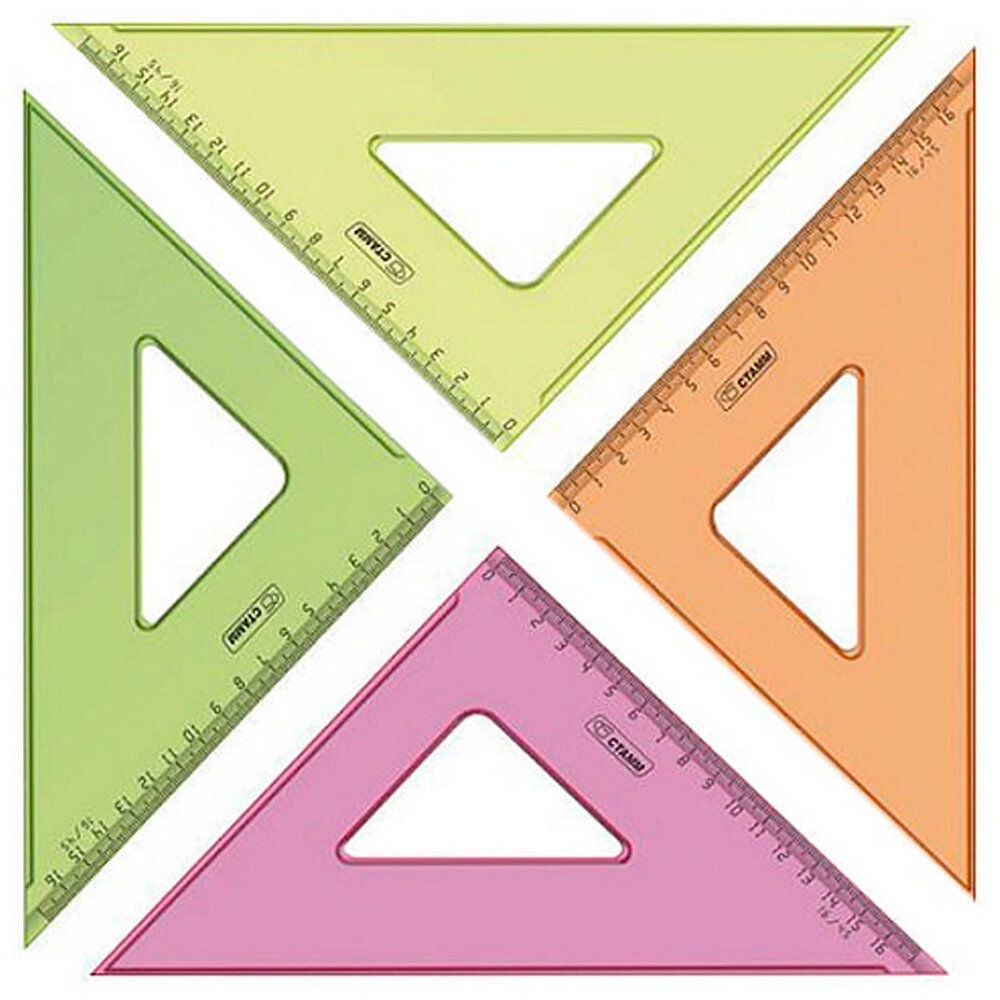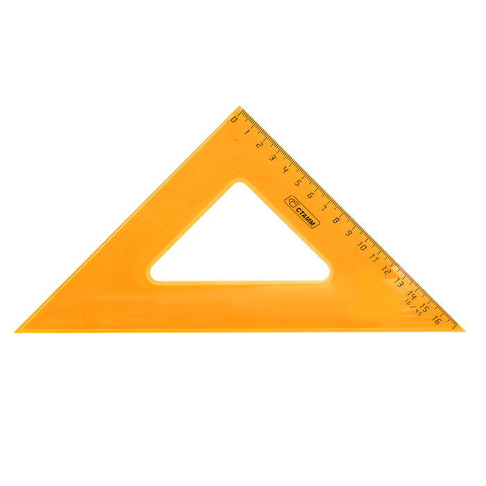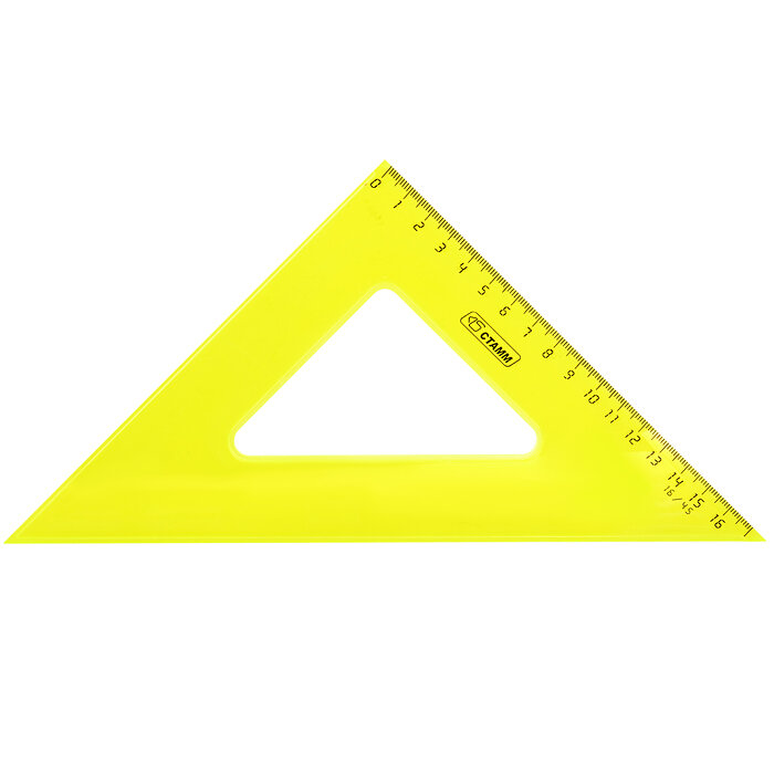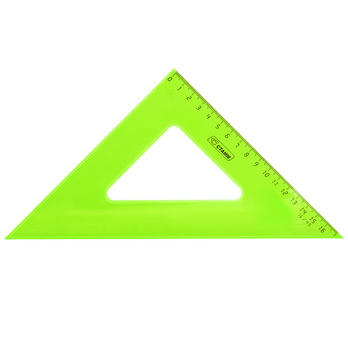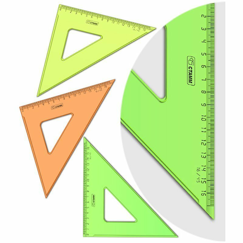 Треугольник СТАММ NEON Cristal - незаменим для чертёжных и измерительных работ. Угол изделия - 45°, длина шкалы - 16 см. Треугольник имеет чёткую напечатанную миллиметровую шкалу и гладкую глянцевую поверхность. Представлен в ярких неоновых цветах ассорти.- Материал: полистирол;