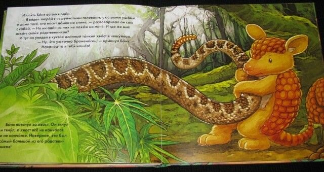 Маленькому броненосцу Боне было очень грустно. Ему совсем не с кем было играть. И однажды он отправился искать друзей. Поможешь Боне найти в книге спрятавшихся друзей - таких же броненосцев?