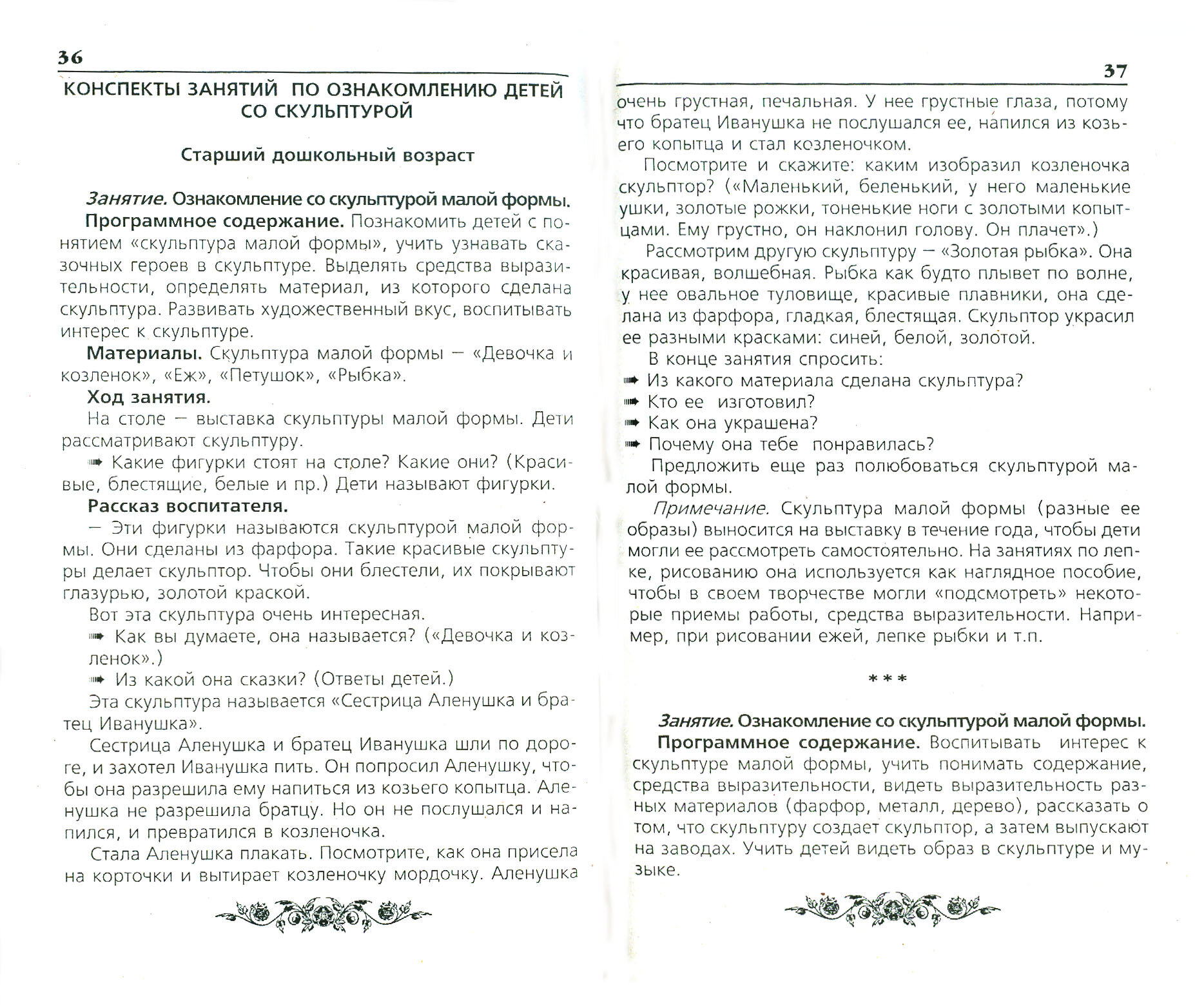 В методическом пособии представлен материал по знакомству детей дошкольного возраста с различными видами и формами скульптуры, даны конспекты занятий для разных групп ДОУ, примерные перспективные планы. Пособие предназначено для заведующих, воспитателей, преподавателей изостудий дошкольных образовательных учреждений, родителей, студентов педагогических учебных заведений.