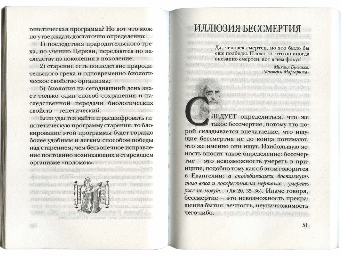 Книга иеромонаха Георгия (Соколова) обращена к самому широкому кругу читателей. В наше время много говорится о здоровом образе жизни, продлении молодости, долголетии. Наномедицина сулит в недалеком будущем открытие невероятных возможностей в лечении многих заболеваний и продлении человеческой жизни. Но что несет людям обретение бессмертия? И какую цену придется за это заплатить? Автор в своей книге пытается найти ответы на эти вопросы.