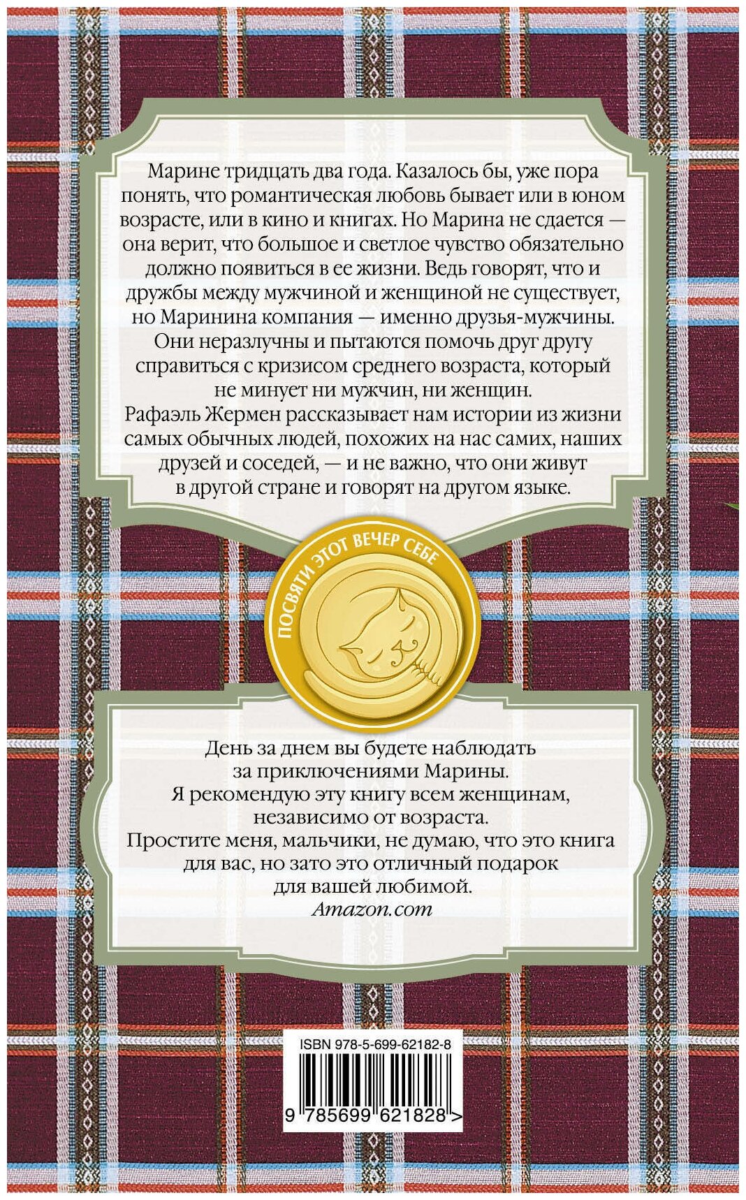 Марине тридцать два года. Казалось бы - уже пора понять, что романтическая любовь бывает или в юном возрасте, или в кино и книгах. Но Марина не сдается - она верит, что большое и светлое чувство обязательно должно появиться в ее жизни. Ведь говорят, что и дружбы между мужчиной и женщиной не существует, но Маринина компания - именно друзья-мужчины. Они неразлучны и пытаются помочь друг другу справиться с кризисом среднего возраста, который не минует ни мужчин, ни женщин. Рафаэль Жермен рассказывает нам истории из жизни самых обычных людей, похожих на нас самих, наших друзей и соседей - и не важно, что они живут в другой стране и говорят на другом языке.