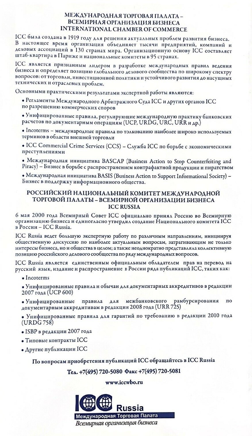 Унифицированные правила ICC для межбанковского рамбурсирования по документарным аккредитивам (International Chamber of Commerce); ICC Russia, 2010