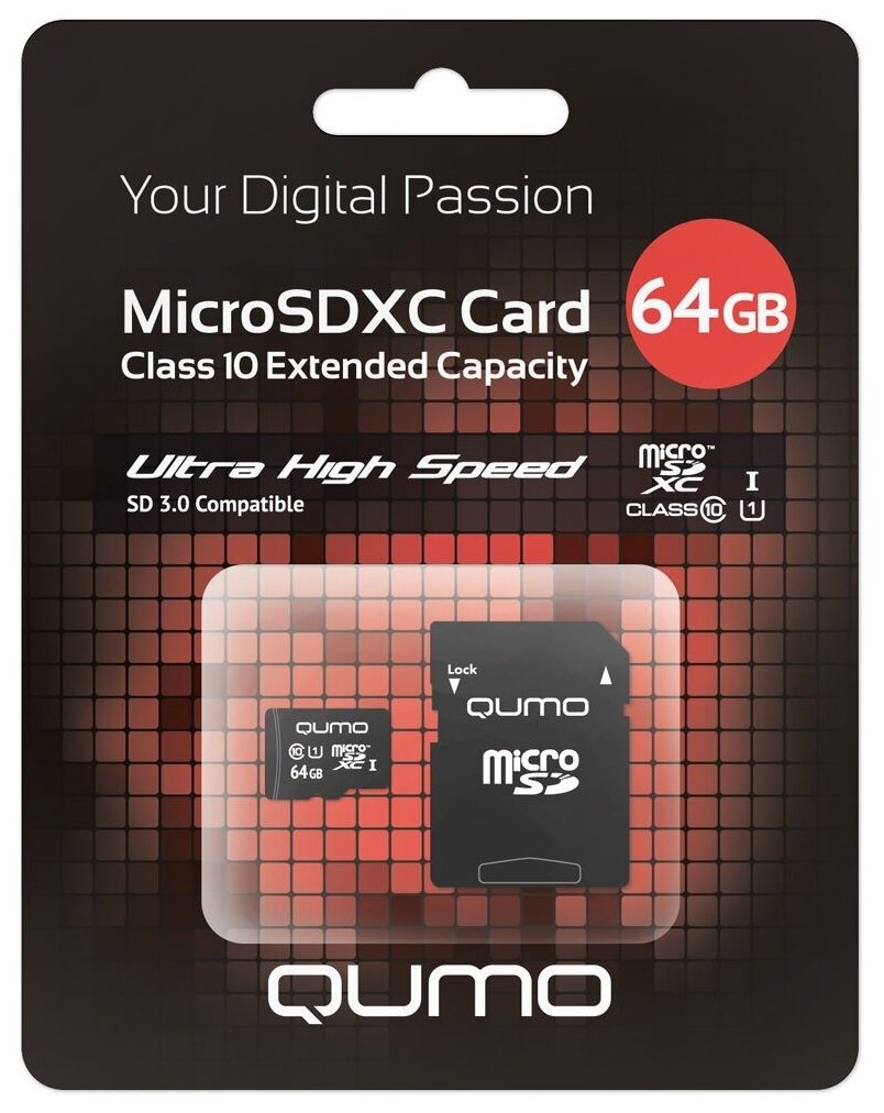 Карта памяти Micro SDXC Qumo идеально подходит для смартфонов, планшетов, а также в качестве сменного носителя для фото и видеокамер, регистраторов, игровых консолей и прочих цифровых гаджетов. Она обладает классом скорости 10, что позволяет снимать видео в формате HD и выполнять фотосъемку в высоком разрешении. В комплект входит адаптер SD.