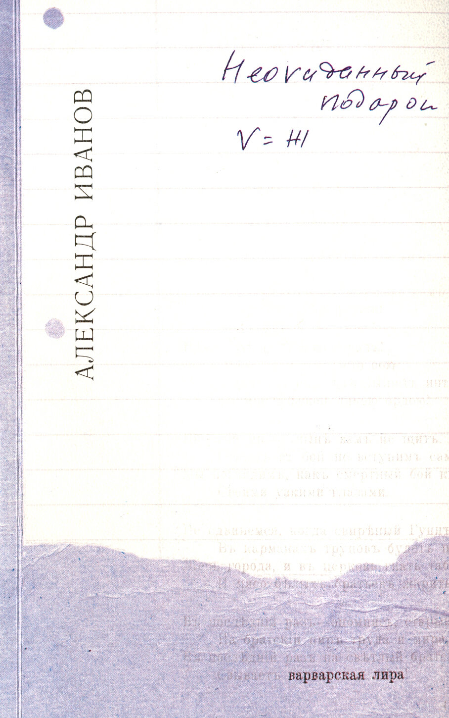 Это первая книга поэта и композитора из Калининграда - Александра Иванова. Прежде его тексты существовали только в виде музыкальных альбомов: 1997 г. - "Хандра", 1998 г. - "Саша - моряк", 2001 г. - "Лирика".
