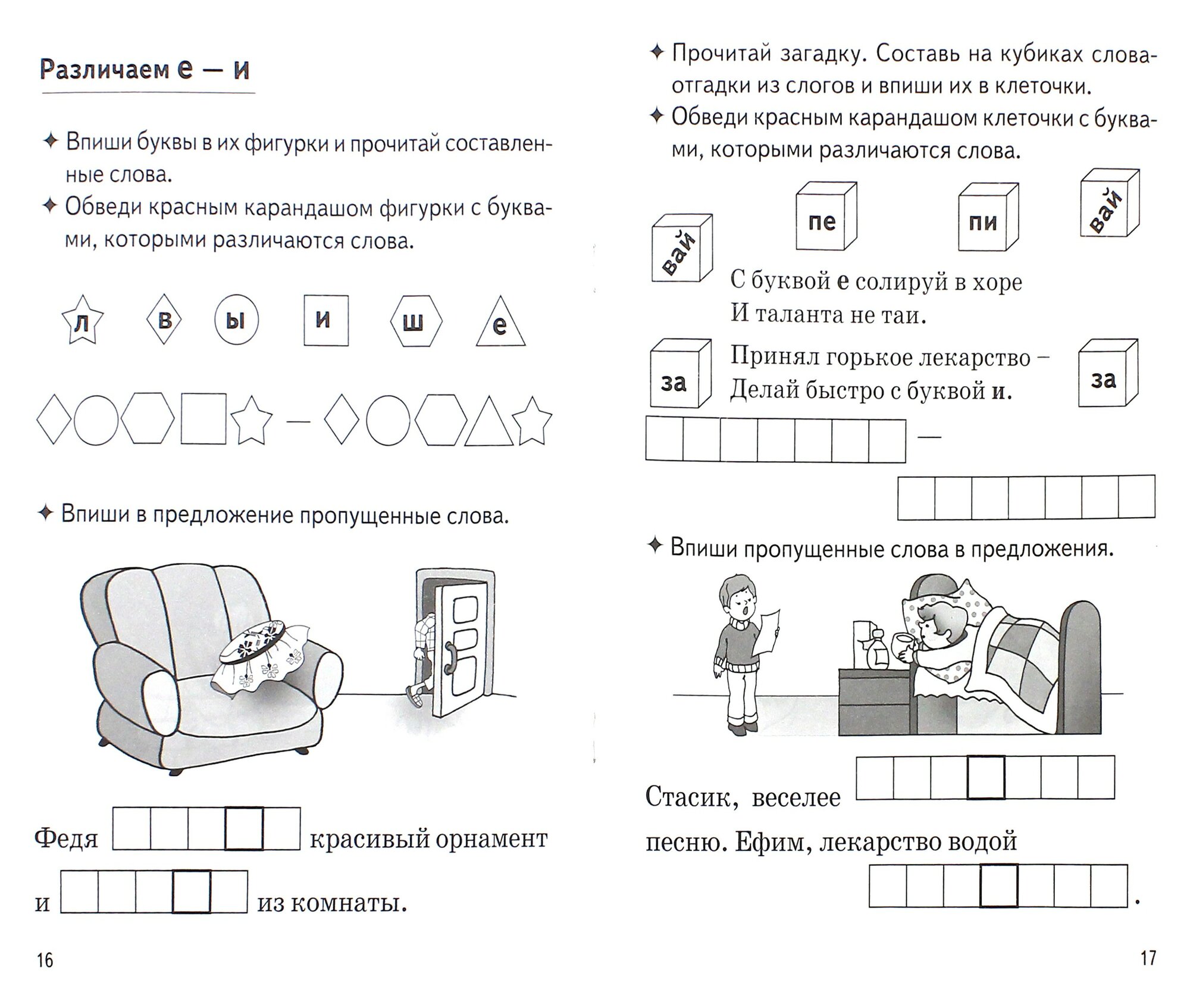 Уважаемые родители и педагоги! Наиболее распространенными ошибками в письменной речи у младших школьников являются смешение и пропуск гласных букв в словах. Это приводит к неуспеваемости по русскому языку. Дети заменяют букву Е на И, У на И даже в ударной позиции (например, лепка вместо липка, кист вместо куст). Причина этих замен и пропусков - недоразвитие умения различать звуки на слух и недостаточная устойчивость внимания. В тетради дана система упражнений для развития умения безошибочно писать слова с буквами Е - И и И - У. Ваш ребенок научится сравнивать и различать слова, похожие по звучанию и написанию, понимать их значение, а значит, сможет избежать ошибок при их написании. Обратите внимание: мы предлагаем практические упражнения с использованием глаголов-паронимов, написание которых вызывает у детей затруднение (например, запивать - запевать, примирять - примерять). Слова-паронимы интересны детям и поэтому служат благодатным материалом не только для развития фонематического слуха и концентрации внимания, но и для обогащения речевой деятельности. Тетрадь рассчитана на совместную работу родителей и детей.