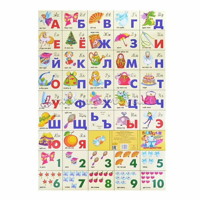 Азбука русская + счет. Для девочек (550х800) (без автора); Литур, 2016