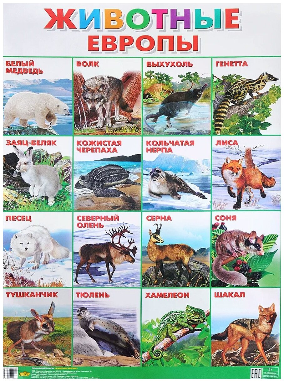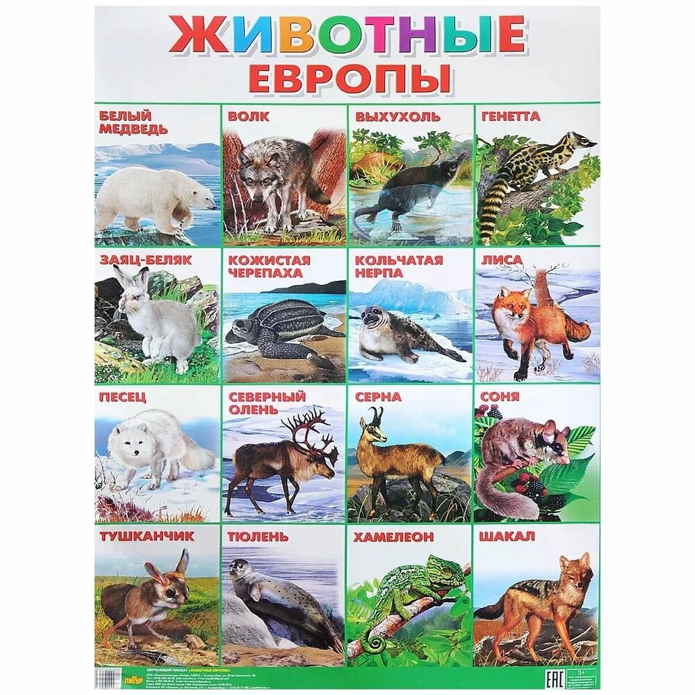 Плакат "Животные Европы" (550х770); Литур, 2016