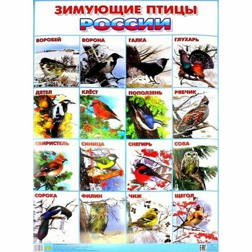 Плакат "Зимующие птицы России" (550х770) (без автора); Литур, 2016