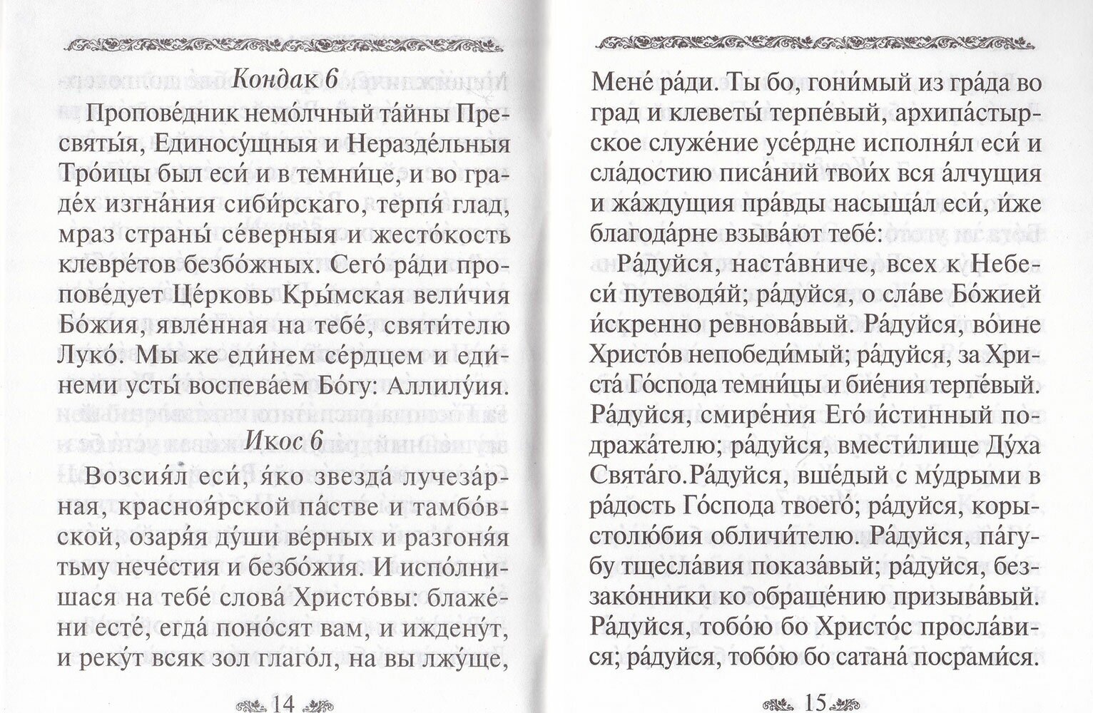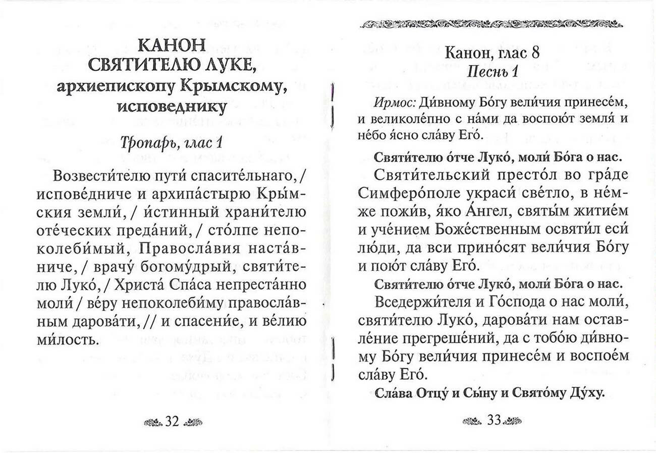 В этой небольшой брошюре благочестивый читатель найдет все основные молитвословия святителю и целителю Луке Крымскому: акафист, тропарь, канон из последования службы святителю, а также краткое житие святого. Рекомендовано к публикации Издательским Советом РПЦ.