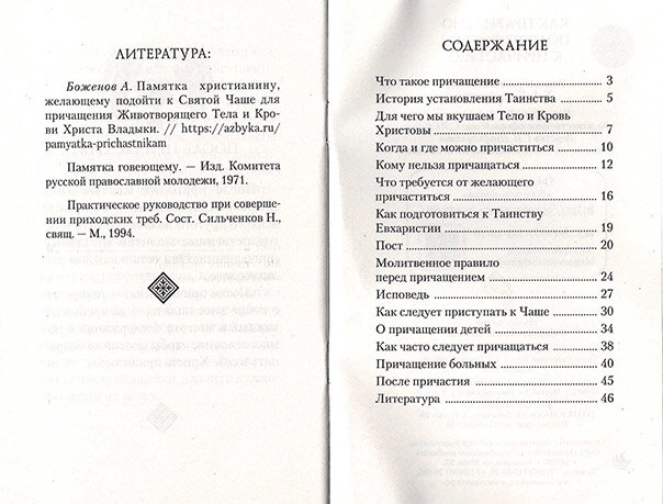 Эта брошюра предназначается для помощи тем, кто собирается приступить к причастию, или Таинству Евхаристии. В ней кратко рассказывается о том, когда установлено это Таинство, в чем его смысл, кому можно и кому нельзя причащаться, а также как подготовиться к нему самим и подготовить ребенка. Для самого широкого круга читателей. Рекомендовано к публикации Издательским советом Русской Православной Церкви ИС Р17-709-0344. Составитель Т. А. Копяткевич.
