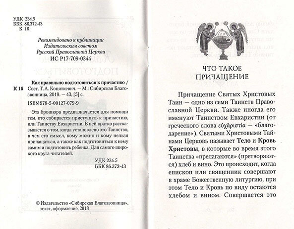 Как правильно подготовиться к причастию (Копяткевич Т. А.); Сибирская Благозвонница, 2019