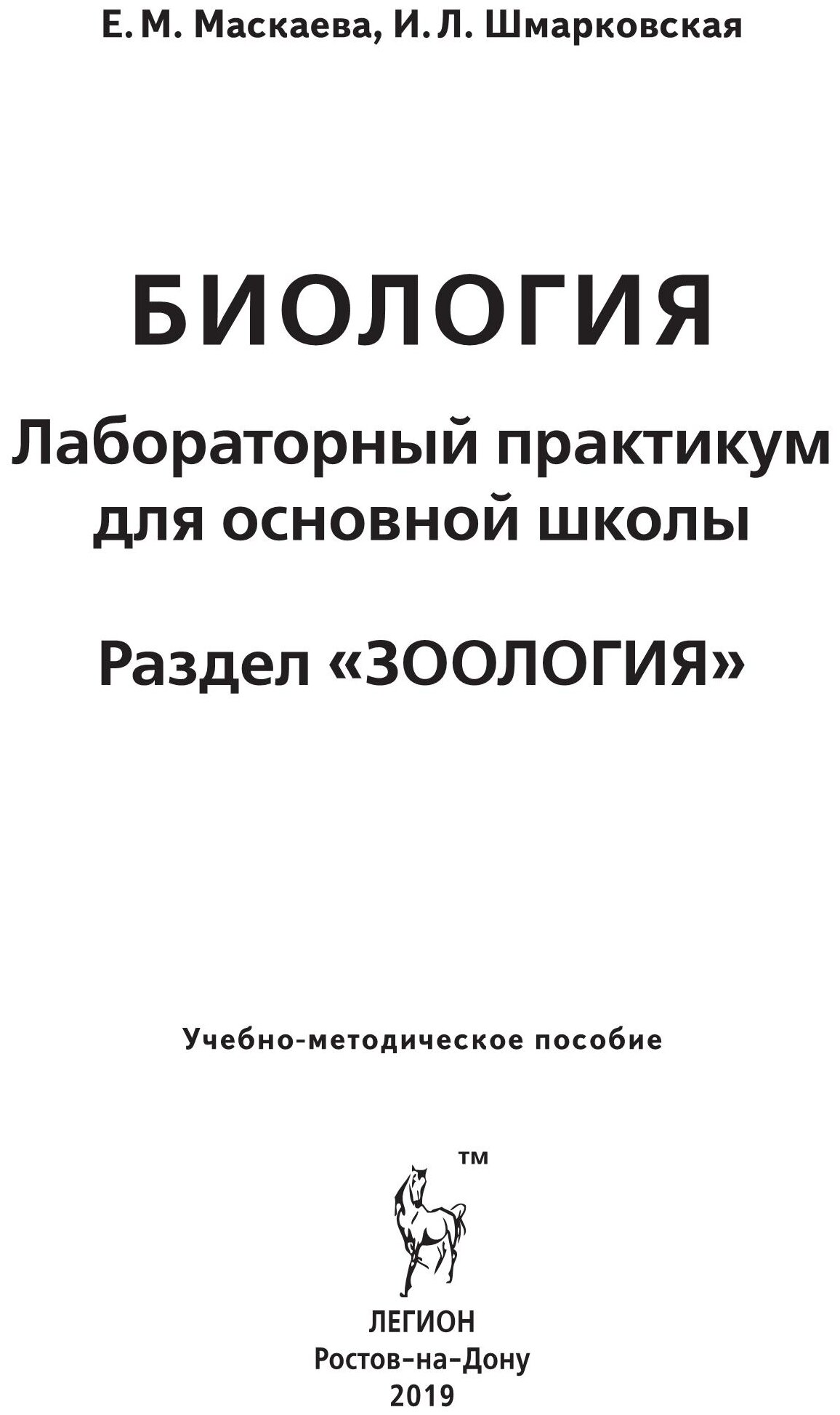 Биология. Раздел "Зоология". Лабораторный практикум для основной школы (Шмарковская Ирина Леонидовна, Маскаева Елена Михайловна); Легион, 2019