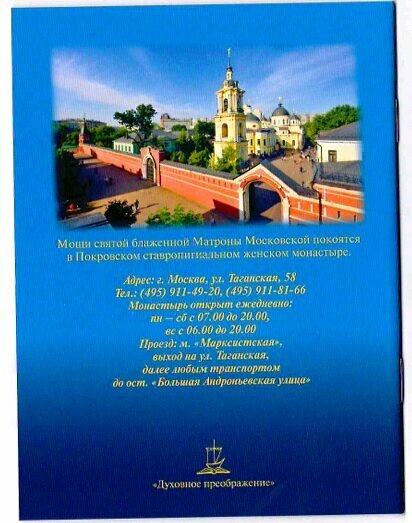Акафист святой блаженной Матроне Московской. Рекомендовано к публикации Издательским Советом Русской Православной Церкви.