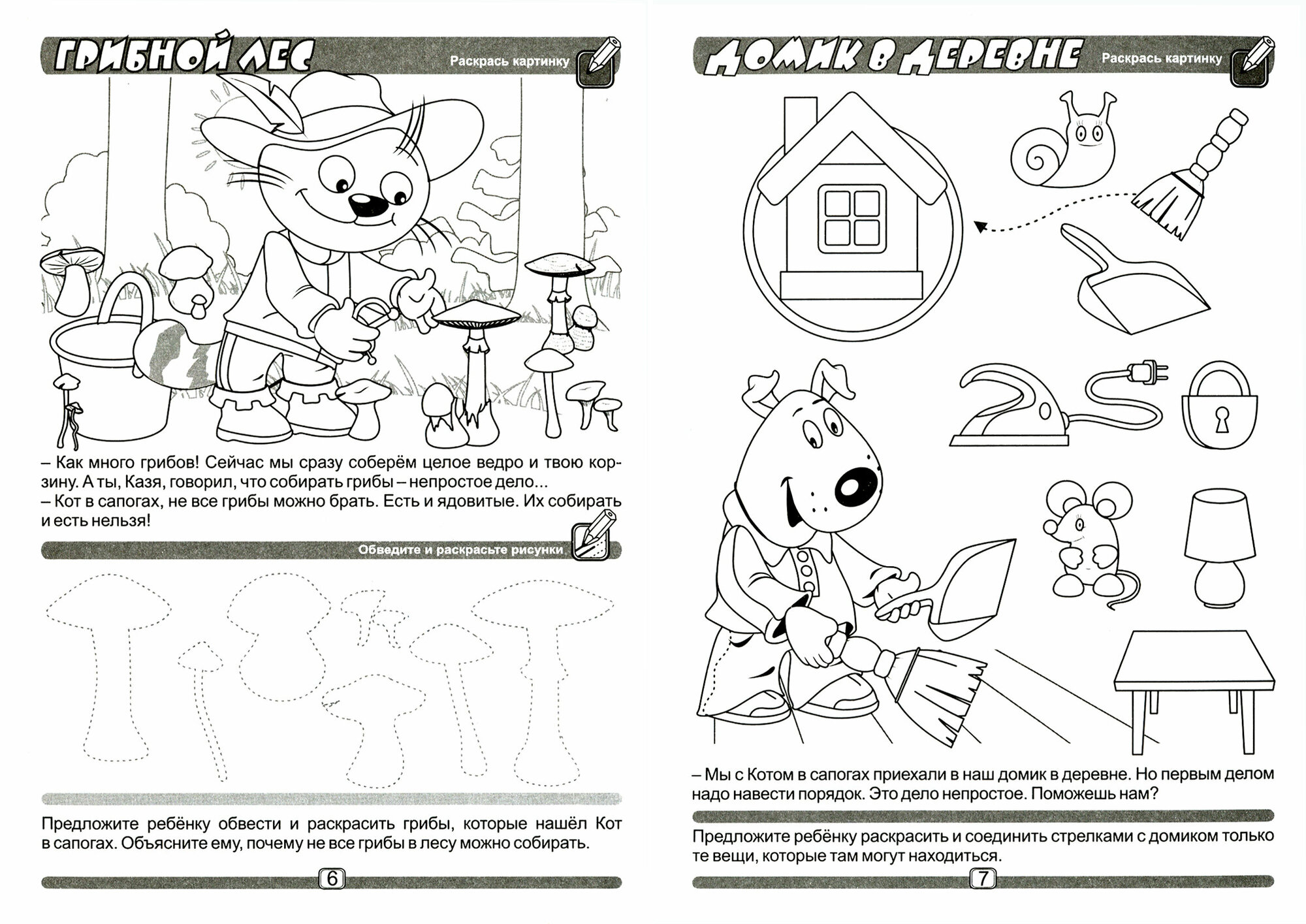 Пропись-раскраска - лучший помощник для ребенка в период перехода от привычного рисования к письму. Упражнения, приведенные в прописи, развивают координацию движений руки, глазомер, зрительное восприятие полей рисования и заливки рисунка цветом, мелкую моторику и первые навыки чистописания. Выполняя простые, сходные с привычным рисованием задания, ребенок учится штриховать предметы, обводить их, повторять элементы, что в значительной степени облегчит ему в будущем работу с настоящими буквами. В процессе рисования он изучит многие важные темы - от уроков чистоты и порядка до работы машины и самолета, сам соберется на каток и в лес по грибы, поможет Коту в сапогах и псу Казе решить задачки и выбраться из трудных ситуаций. Пусть работа с прописью станет увлекательной игрой, а не утомительной рутиной. Занимайтесь с малышом по 20-30 минут в день, а чтобы его пальчики не уставали, используйте мягкий и хорошо заточенный простой карандаш и цветные карандаши. Писать ручкой в этом возрасте для ребенка может оказаться сложно.