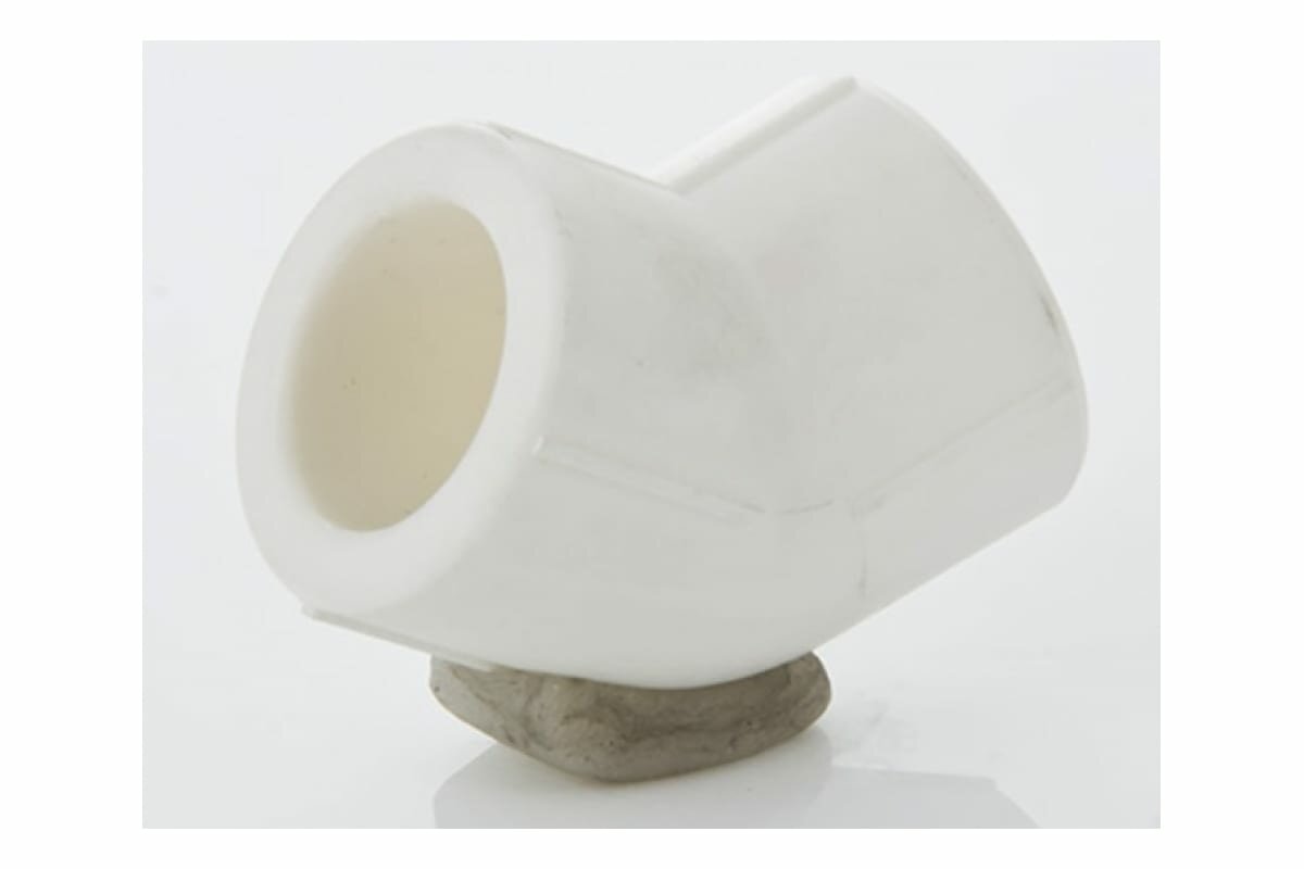 - Двухсторонний угловой полипропиленовый фитинг (отвод), позволяющий изменить направление полипропиленового трубопровода на 45°. Монтаж осуществляется методом раструбной сварки.