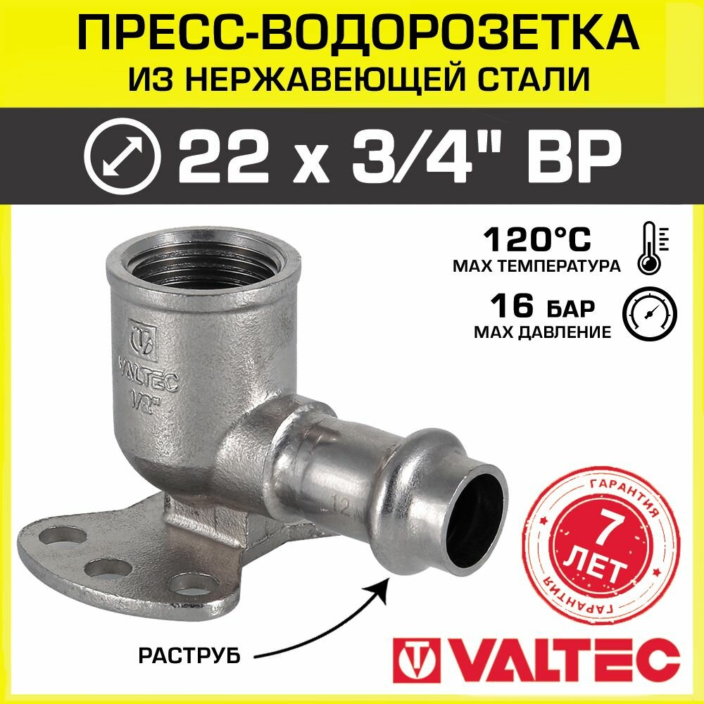 Водорозетка Valtec пресс 22х1/2", нерж. сталь
