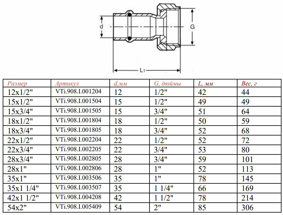 | Тип | пресс-фитинг из нержавеющей стали с накидной гайкой |