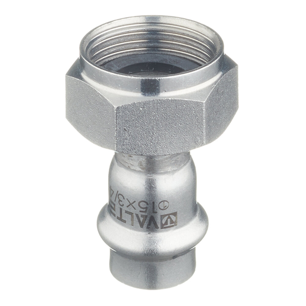 Муфта Valtec пресс 15х3/4" ВР с накидной гайкой, нерж. сталь