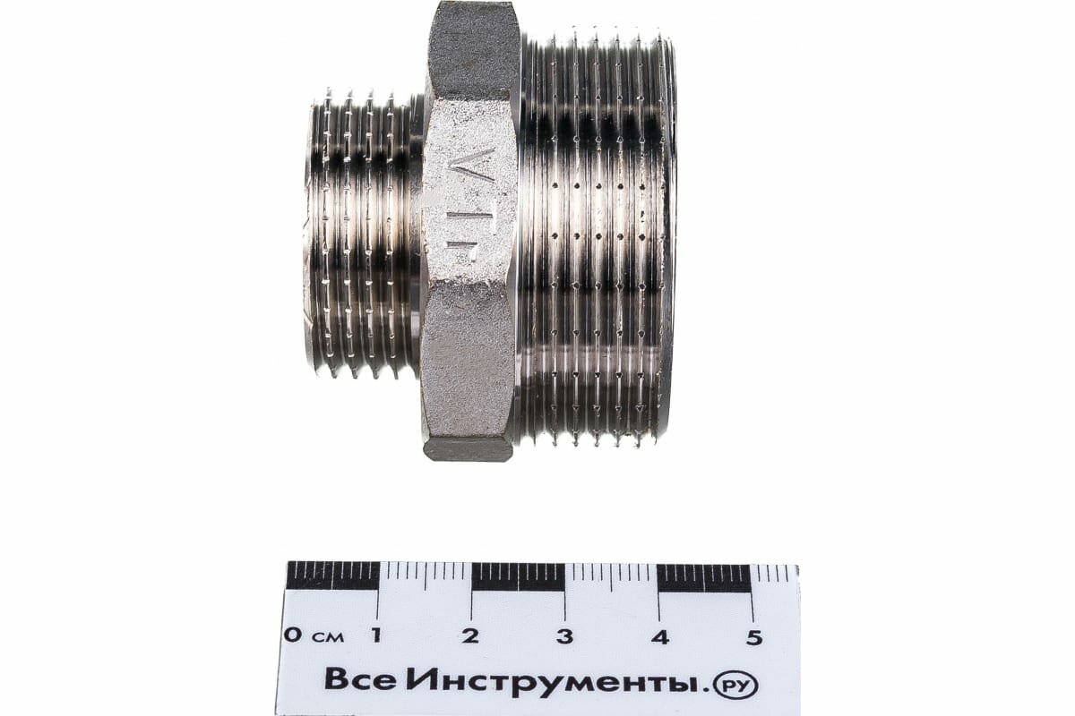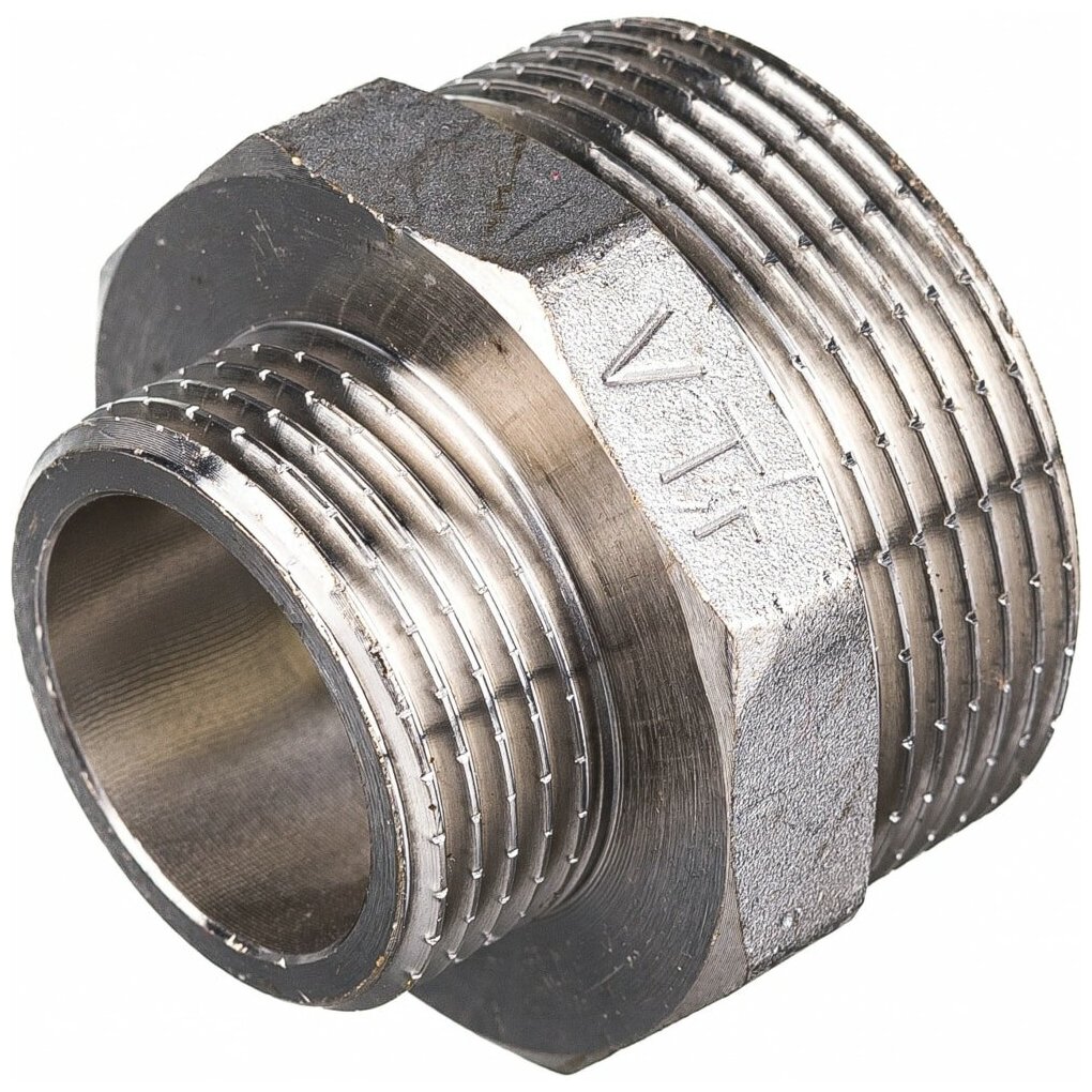 Ниппель переходной Valtec 1 1/2"x1" наружная резьба никелированная латунь VTr.580.N.0806