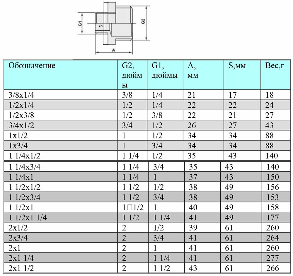 | Диаметр резьбы (в дюймах) | 1 1/2"x1" |