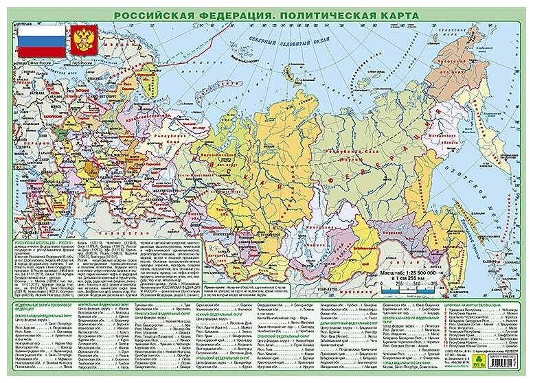 Карта РФ (планшетная) политическая/физическая, на картоне двусторонняя с ламинацией На лицевой стороне политическая карта РФ на оборотной физическая + справочная информация. Карта отпечатана на картоне с двусторонней ламинацией. Карта имеет закругленные углы.