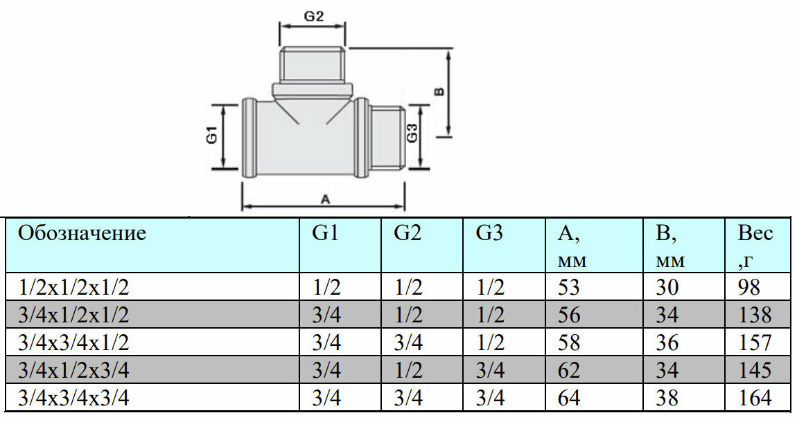 | Размеры резьб | 3/4-1/2-3/4 |