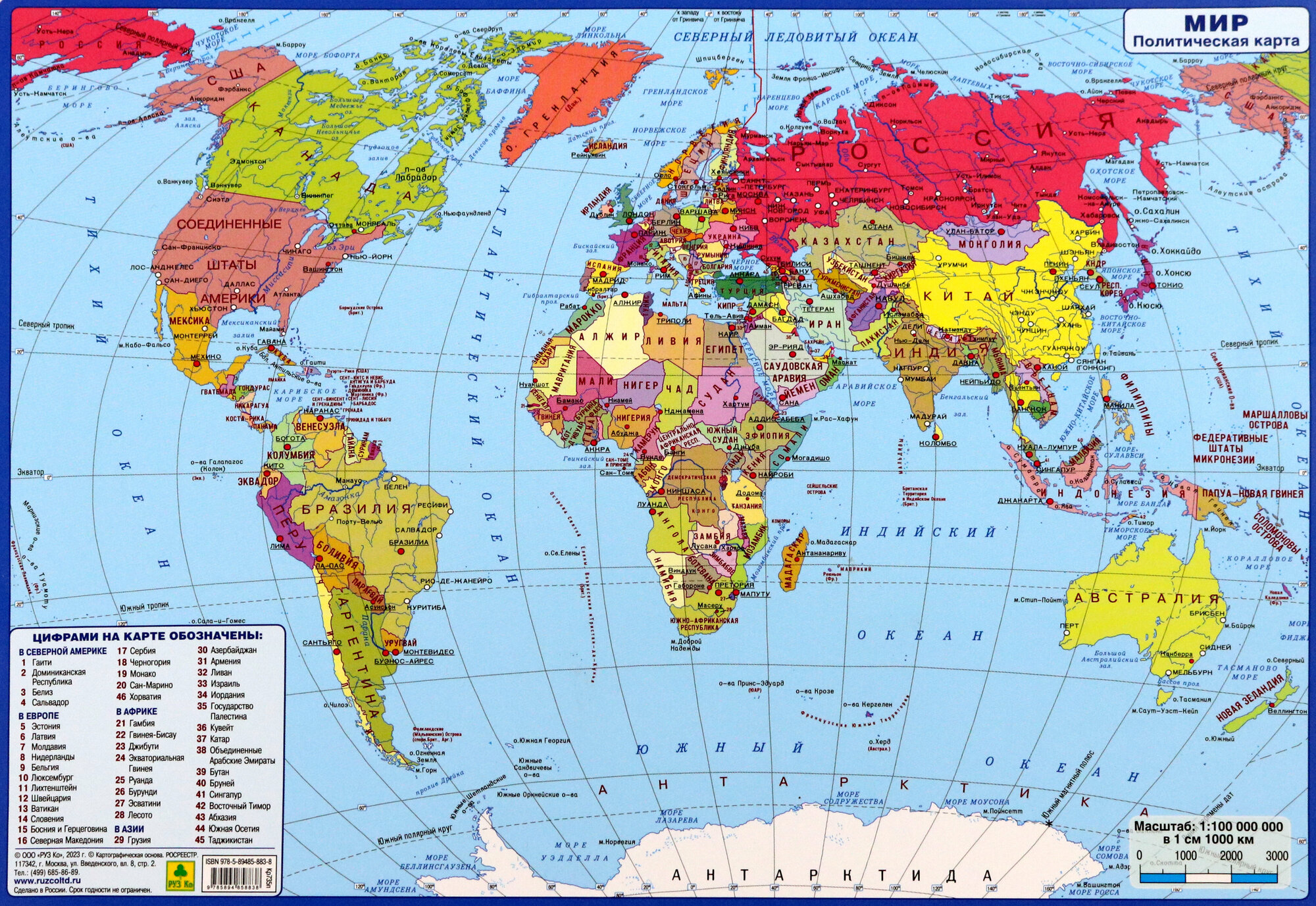Планшетная карта Мира. Политическая. Двусторонняя; РУЗ Ко, 2023