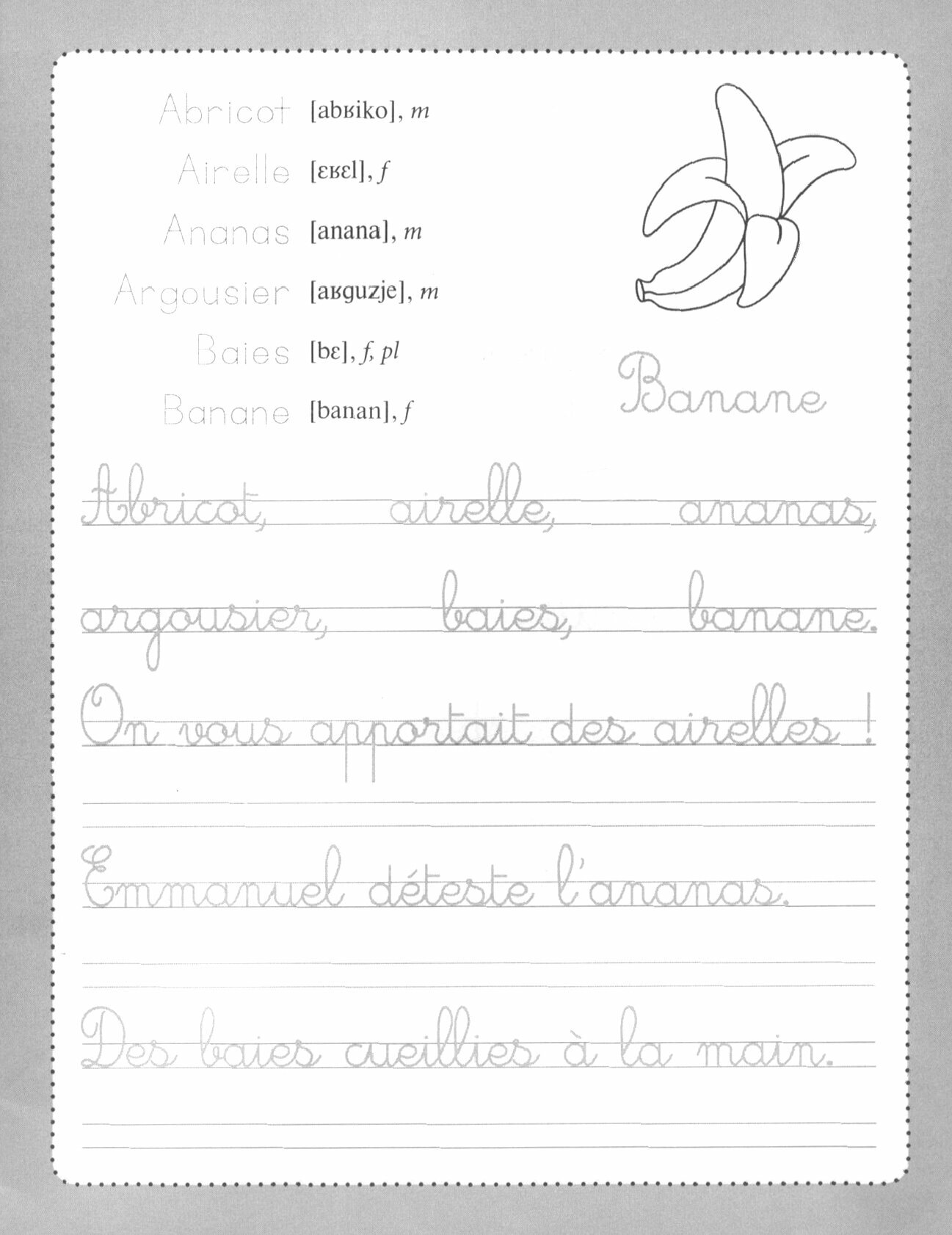 Издание предназначено для отработки навыков написания и запоминания слов по теме ФРУКТЫ и ЯГОДЫ. Письменными образцами служат буквы, используемые во французских школах на начальном этапе обучения. В брошюре есть кроссворды и различные игры для закрепления изученных слов. В конце прописи имеется словарь.