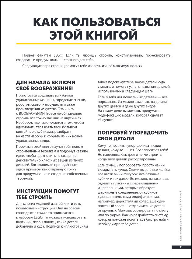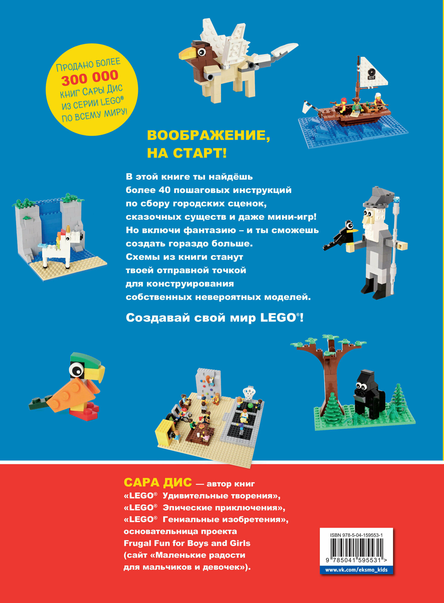 Приготовься создавать удивительные машины, городские сценки, роботов, сказочных существ и даже произведения искусства! Эта книга поможет тебе использовать свое воображение на полную мощность! В ней ты найдешь более 70 пошаговых инструкций по сбору разнообразных фигур и сценок, но, включив фантазию, ты сможешь сделать гораздо больше! Используй схемы из книги как отправную точку для сооружения собственных уникальных моделей. Учись новых техникам конструирования, создавай свой мир LEGO - и для этого у тебя наверняка есть все детали!