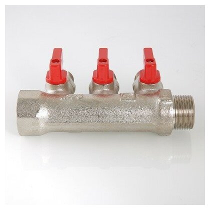 Коллектор Valtec с отсекающими кранами под евроконус 1" x 3/4" на 3 отвода VTc.580.NE.0603