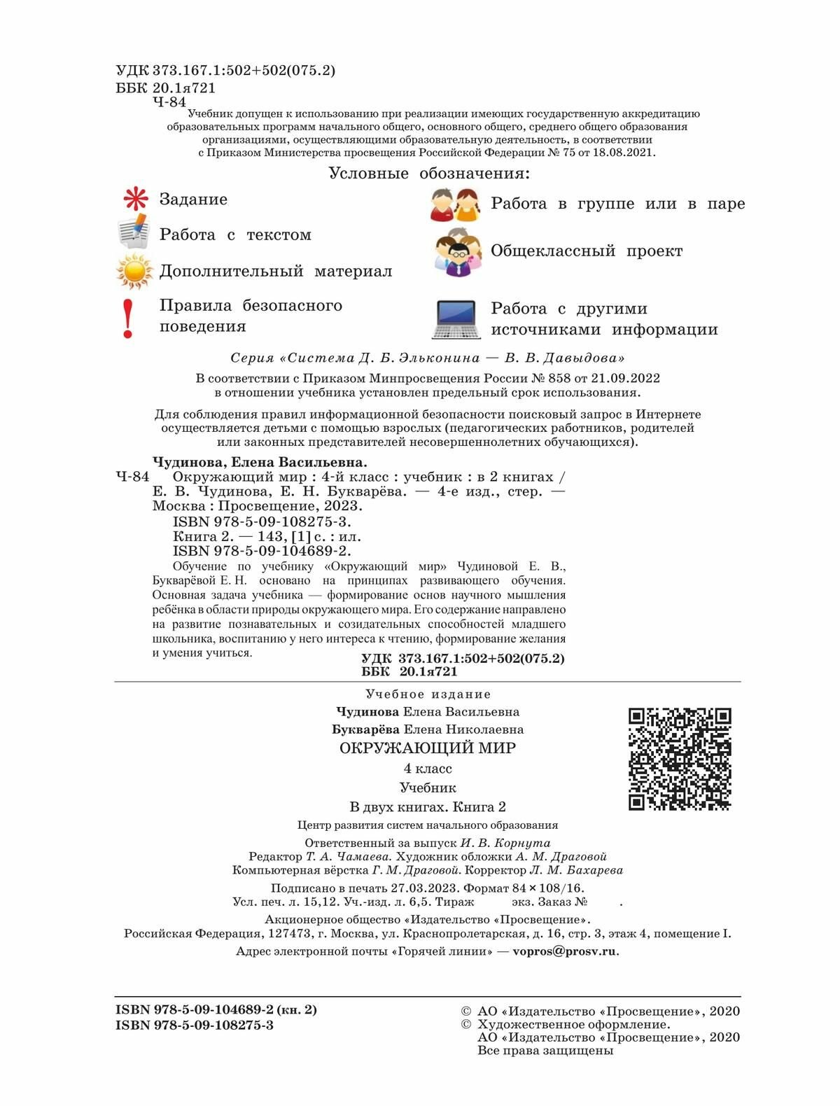 Окружающий мир. 4 класс. Учебник. В 2-х частях. ФП (Чудинова Елена Васильевна, Букварева Елена Николаевна); Просвещение, 2022