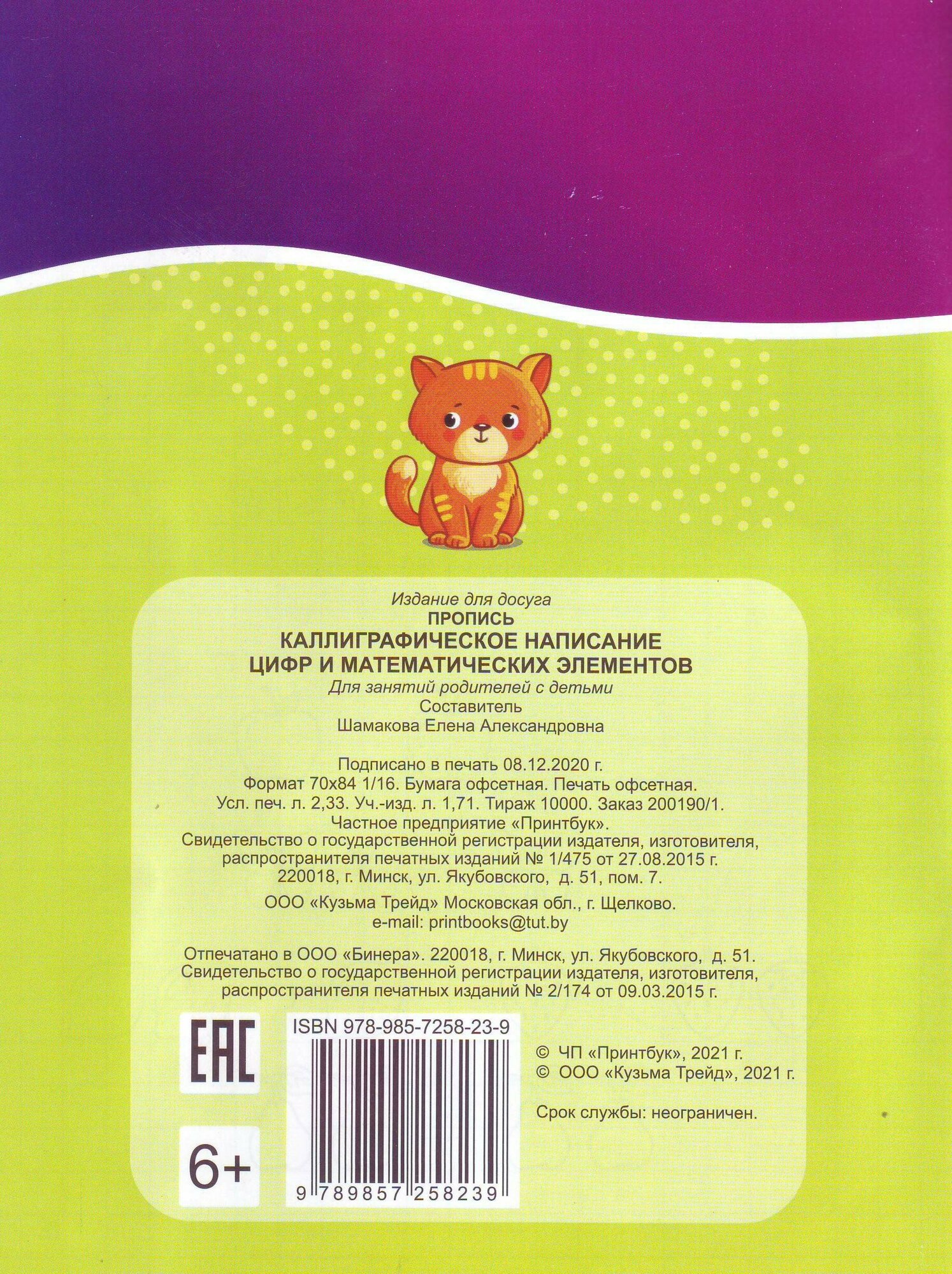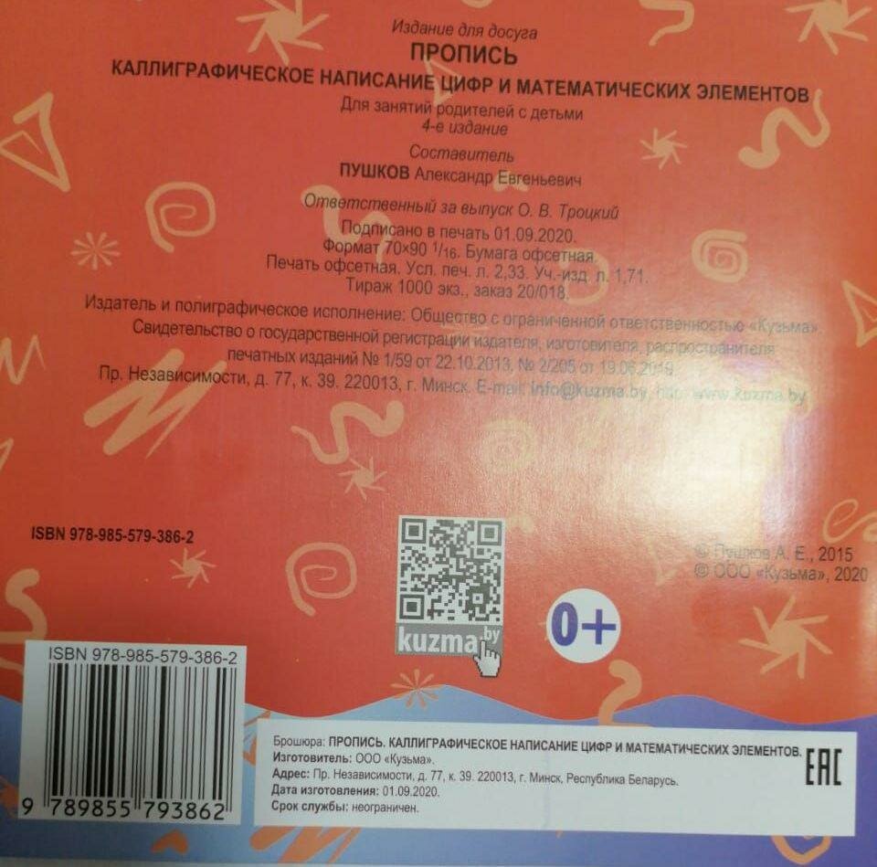 Каллиграфическое написание цифр и математических элементов. Пропись; Кузьма, 2023