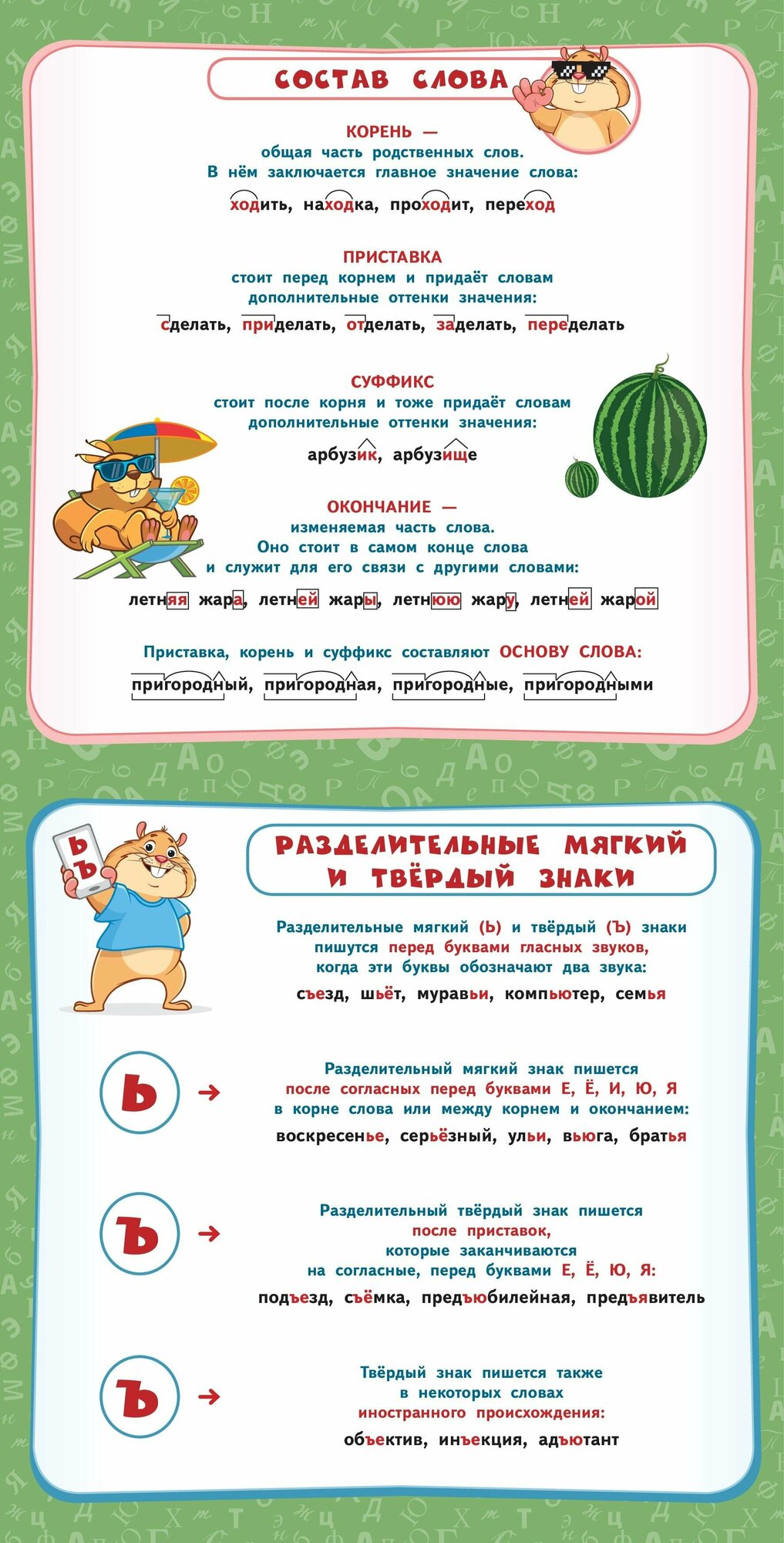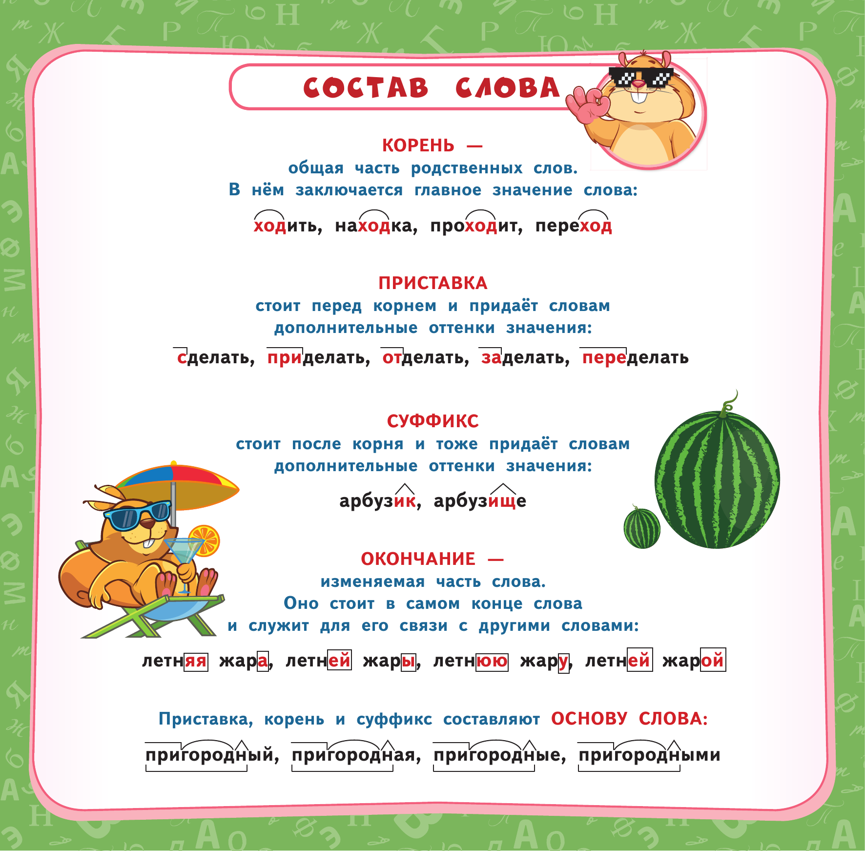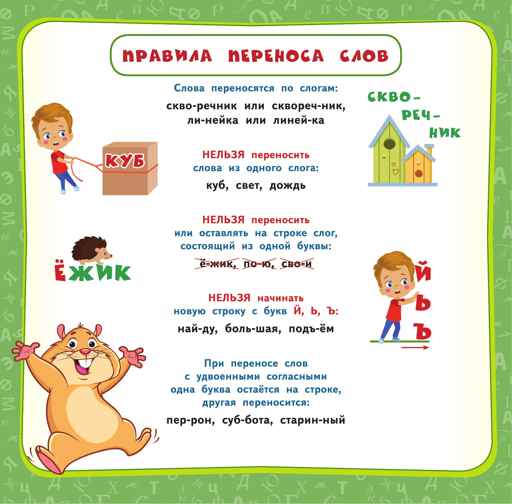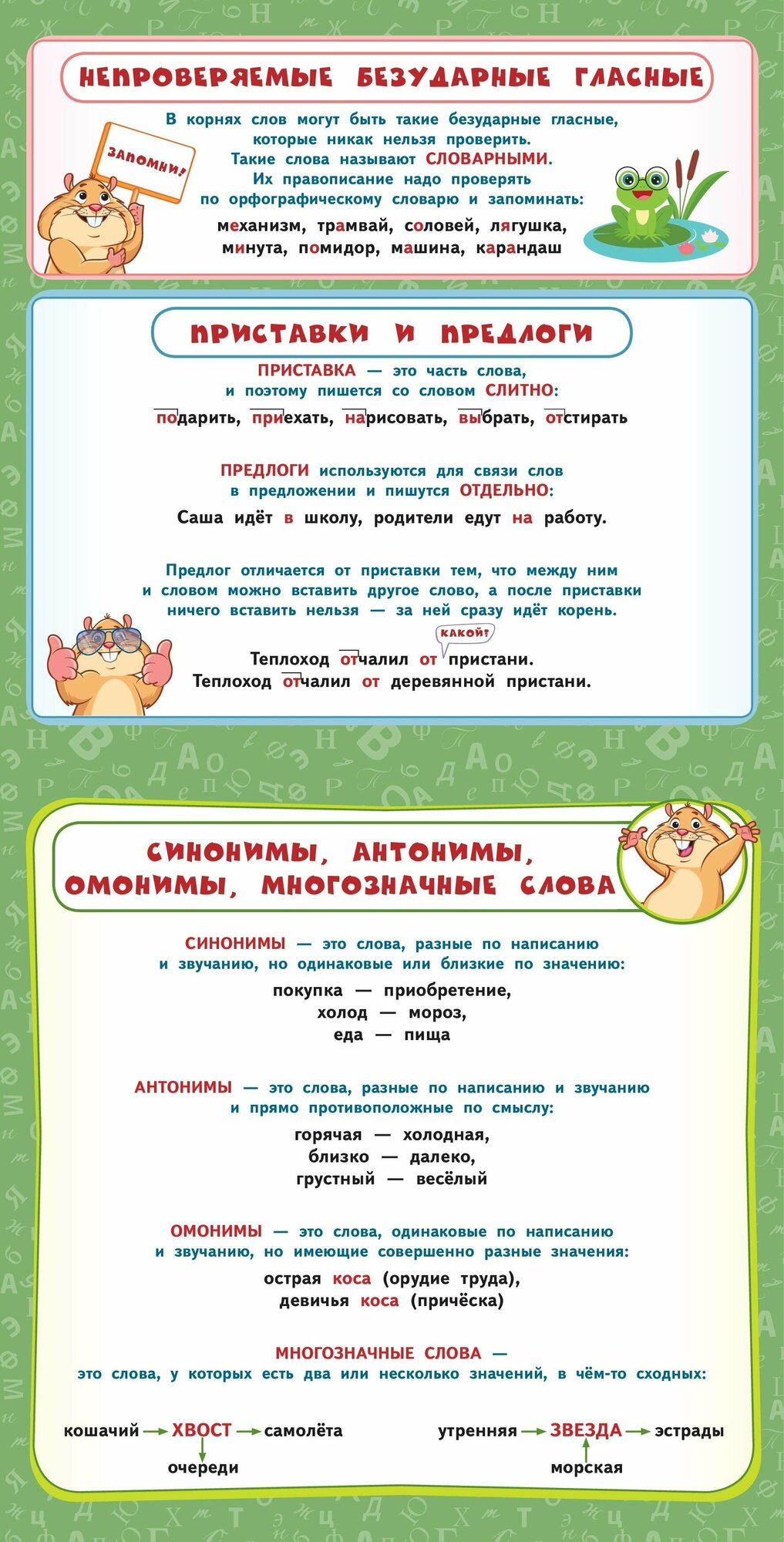 В пособии собраны все основные правила по русскому языку за курс начальной школы. Основная цель альбома-плаката - закрепление и повторение знаний, полученных на уроках русского языка. Учебный материал изложен наглядно и доступно, с применением схем и таблиц, и красочно проиллюстрирован. Благодаря этому правила и примеры их применения будут легко запоминаться. Порядок тем соответствует школьной программе 1-4 классов. Плакаты можно использовать как дома, так и в школе для лучшего усвоения и повторения учебного материала.
