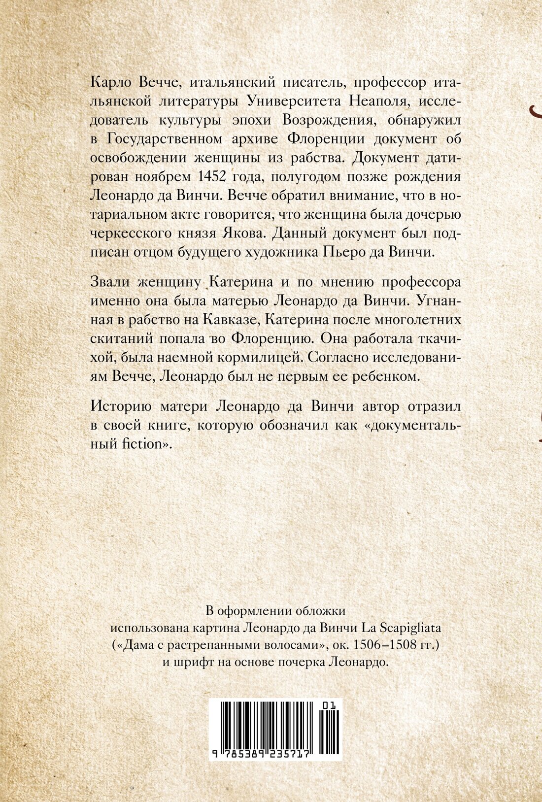 Катерину, девушку, рожденную свободной, угнали в рабство и отняли все - Родину, мечты, будущее. Невероятно сильная духом она выстояла - боролась, страдала, любила, вернула себе свободу и человеческое достоинство. Одного из детей, которого она родила еще рабыней, Катерина любила больше жизни. И он отвечал ей взаимностью, хотя ему нельзя было называть ее мамой. Имя этого ребенка прогремело по всему миру. Его звали Леонардо да Винчи.