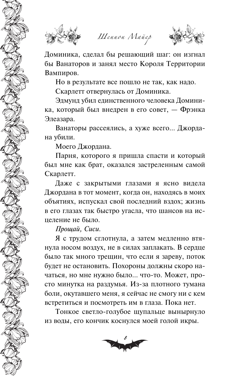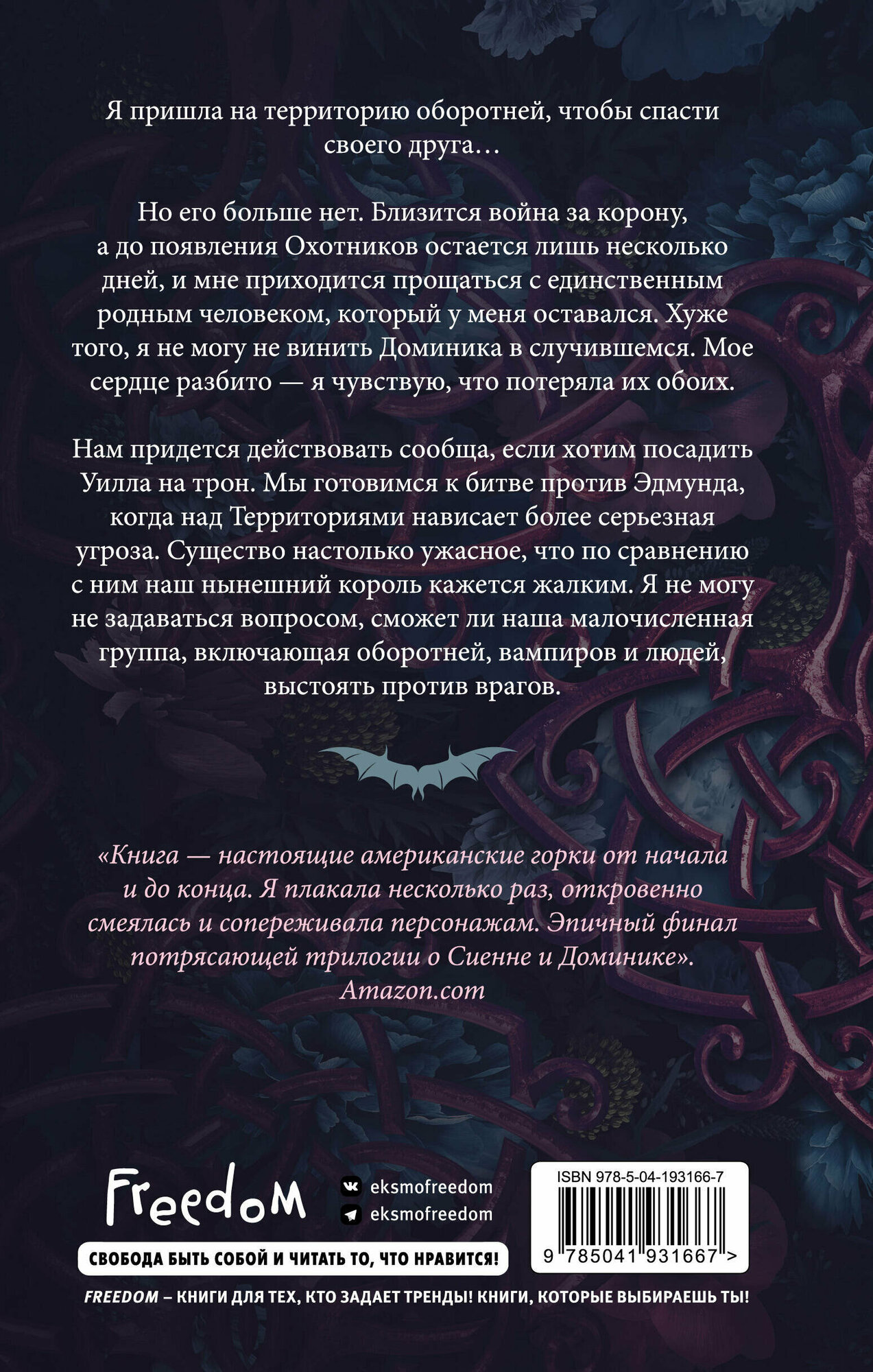 Эпичный финал невероятно захватывающей, мрачной и романтичной трилогии «Территории Альфа» о Сиенне и Доминике от автора бестселлеров New Your Times Шеннон Майер! В этом романе вас ждут сверхъестественные создания, дерзкие, яркие, запоминающиеся герои, уникальная верстка и цветная карта на форзацах! Я пришла на территорию оборотней, чтобы спасти своего друга. Но его больше нет. Близится война за корону, а до появления Охотников остается лишь несколько дней, и мне приходится прощаться с единственным родным человеком, который у меня оставался. Хуже того, я не могу не винить Доминика в случившемся. Мое сердце разбито - я чувствую, что потеряла их обоих. Нам придется действовать сообща, если хотим посадить Уилла на трон. Мы готовимся к битве против Эдмунда, когда над Территориями нависает более серьезная угроза. Существо настолько ужасное, что по сравнению с ним наш нынешний король кажется жалким. Я не могу не задаваться вопросом, сможет ли наша малочисленная группа, включающая оборотней, вампиров и людей, выстоять против врагов? «Книга - настоящие американские горки от начала и до конца. Я плакала несколько раз, откровенно смеялась и сопереживала персонажам. Эпичный финал потрясающей трилогии о Сиенне и Доминике». - Amazon