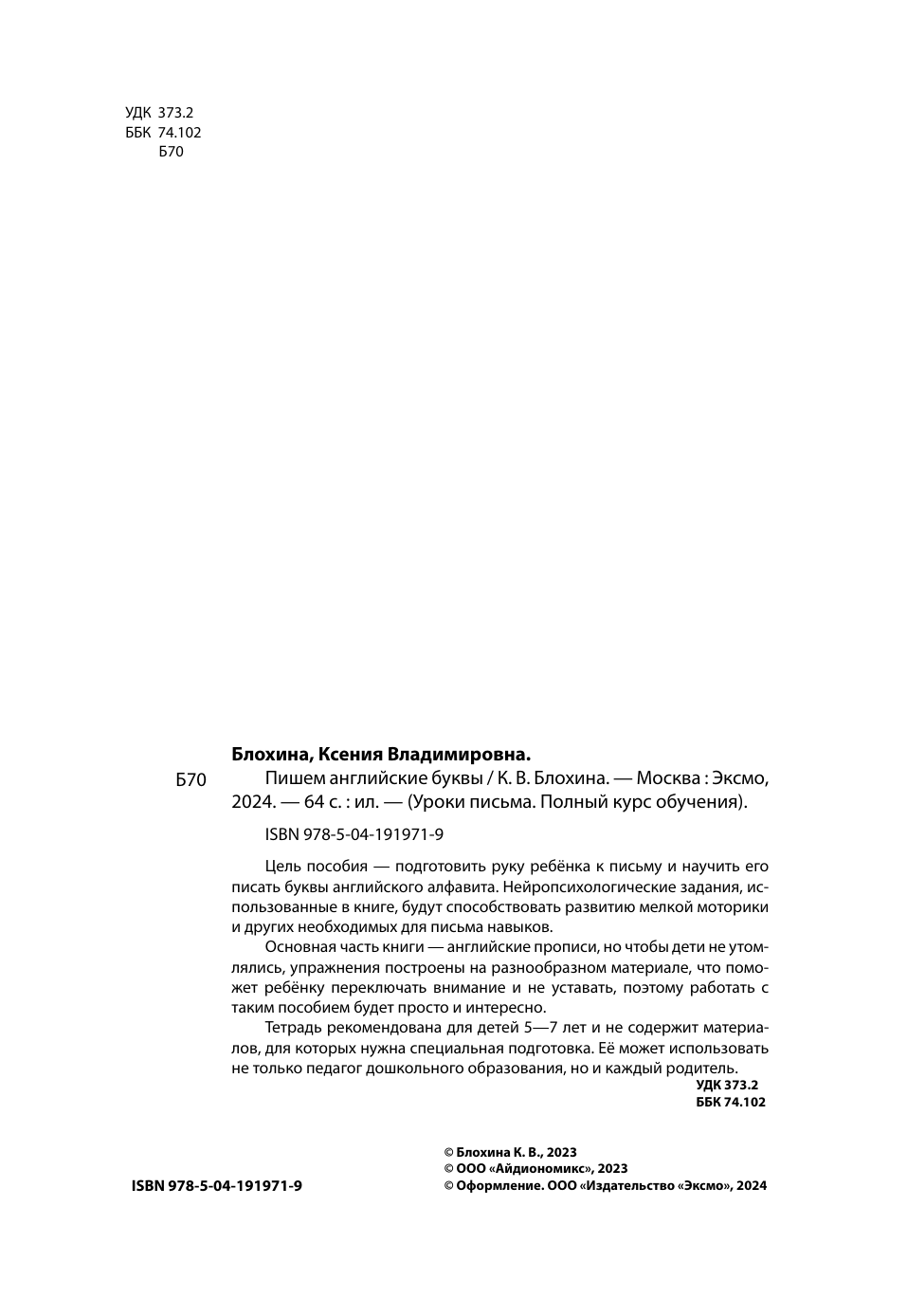 Книга: Пишем английские буквы (Блохина Ксения Владимировна); ООО "Издательство "Эксмо", 2024