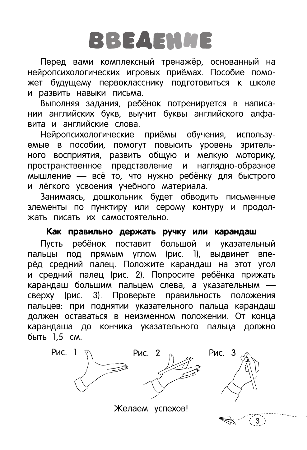 В пособии вы найдете задания, которые помогут ребенку научится писать буквы английского алфавита. Тетрадь рекомендована для детей 5-7 лет и адресована родителям, воспитателям и педагогам подготовительных курсов.