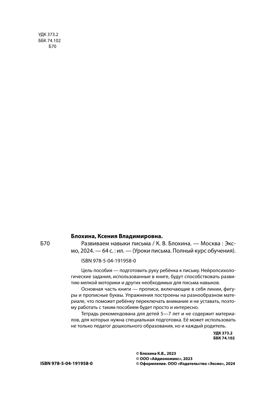 Книга: Развиваем навыки письма (Блохина Ксения Владимировна); ООО "Издательство "Эксмо", 2024