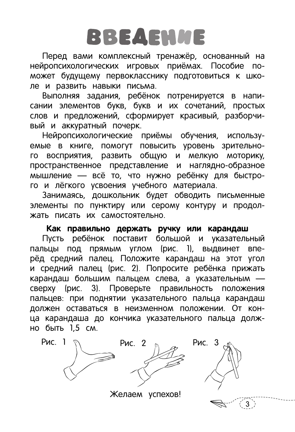 В пособии вы найдете задания, которые помогут ребенку подготовить руку к письму, научиться ориентироваться на листе бумаги, развить зрительное внимание и восприятие. Тетрадь рекомендована для детей 5-7 лет и адресована родителям, воспитателям и педагогам подготовительных курсов.