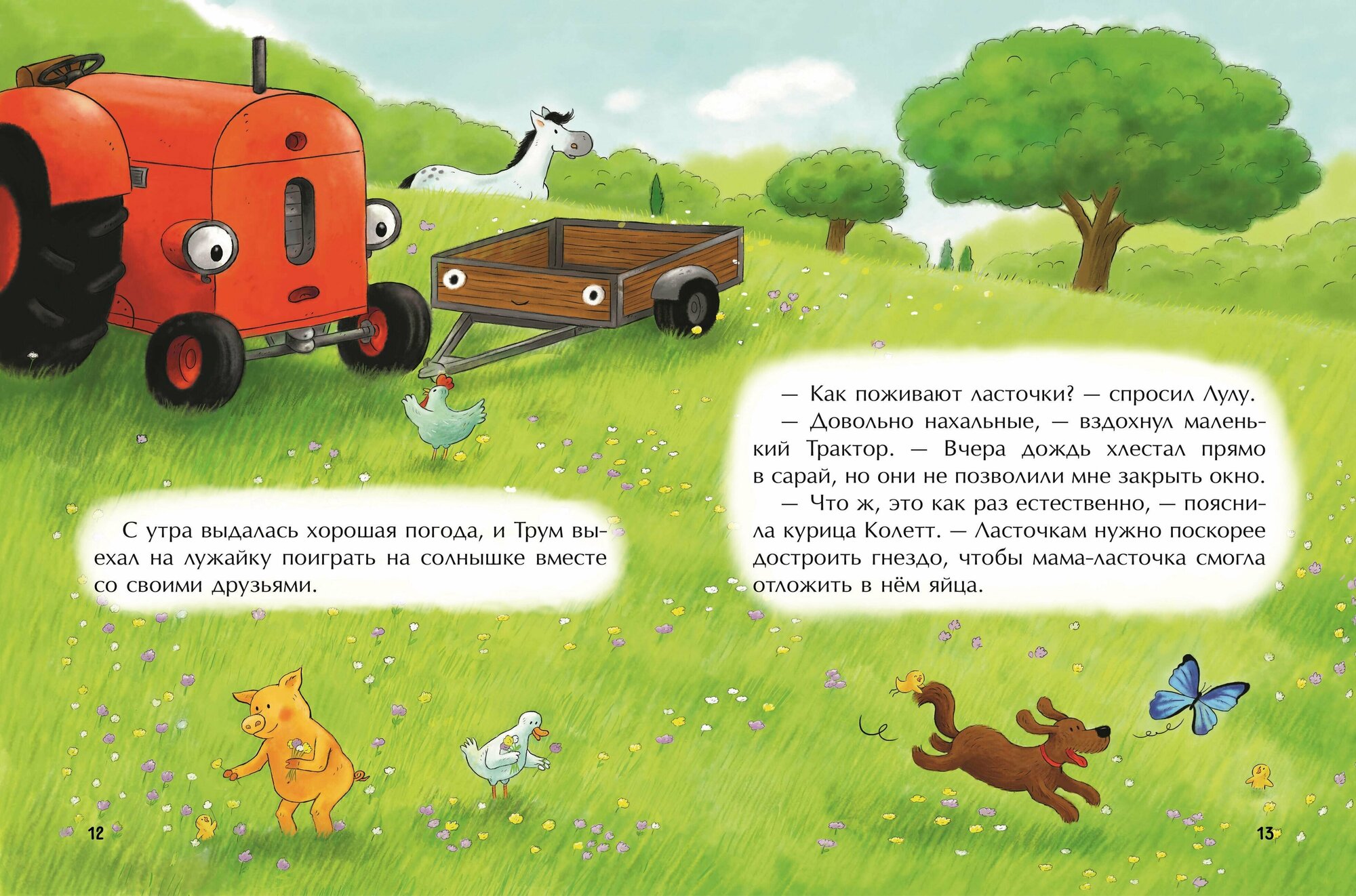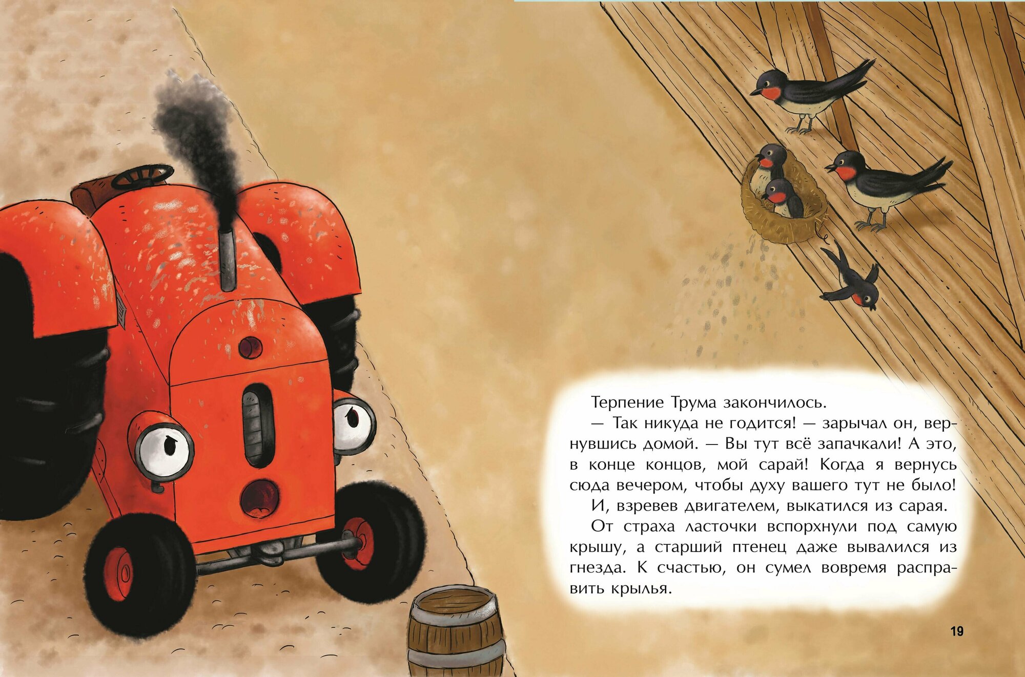Новая книга про маленького красного Трактора и его друзей! Истории о дружбе, понимании, взаимовыручке и настоящем счастье покорили сердца тысяч детей. Как-то раз маленький красный Трактор заехал в свой сарай и увидел, что в нем поселились ласточки. Птицы вили гнездо, не обращая внимания на хозяина и даже не спросив его разрешения. С каждым днем новые соседи доставляли малышу все больше неудобств. И вот настал момент, когда терпение Трактора закончилось. Он решил выгнать беспокойных соседей. Но одна случайная встреча изменила его планы и положила начало настоящей дружбе.