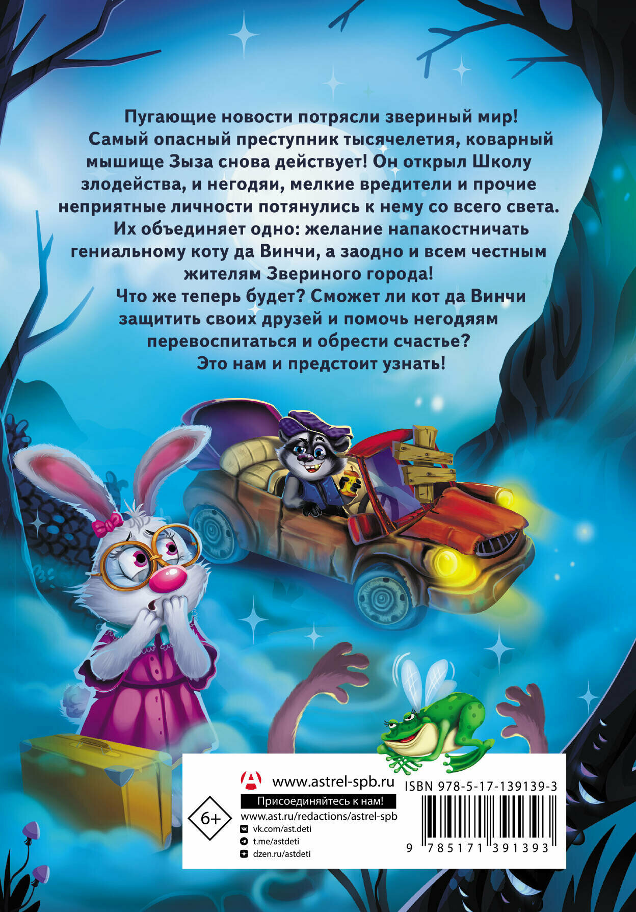 Пугающие новости потрясли звериный мир! Самый опасный преступник тысячелетия, коварный мышище Зыза снова действует! Он открыл Школу Злодейства, и негодяи, мелкие вредители и прочие неприятные личности потянулись к нему со всего света. Их объединяет одно: желание напакостничать гениальному коту да Винчи, а заодно и всем честным жителям Звериного города! Что же теперь будет? Сможет ли кот да Винчи защитить своих друзей и помочь негодяям перевоспитаться и обрести счастье? Это нам и предстоит узнать!