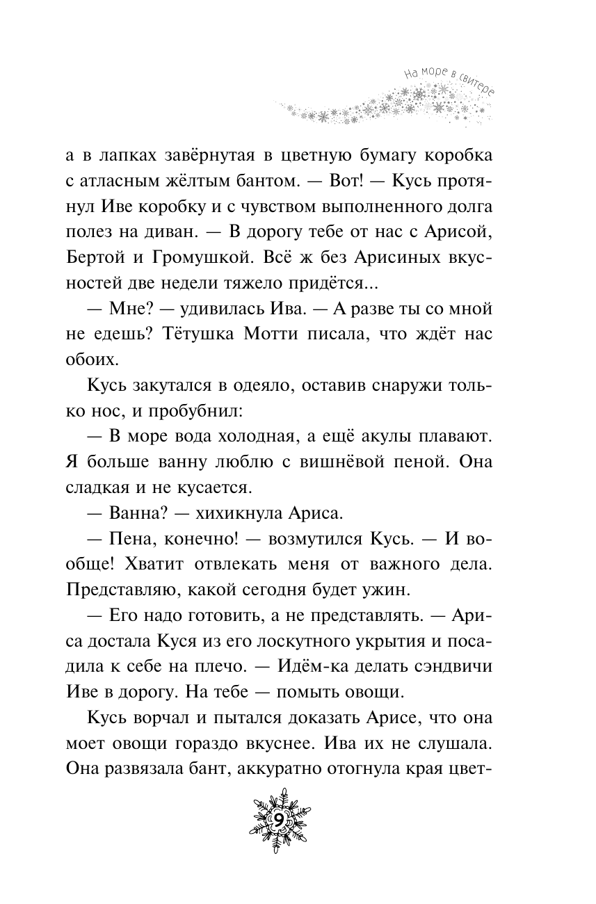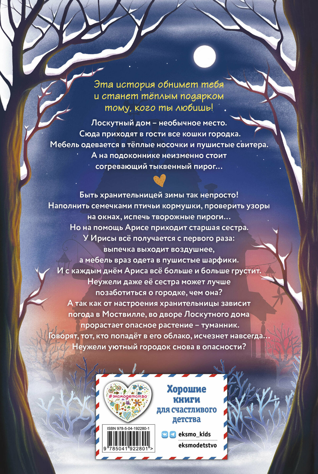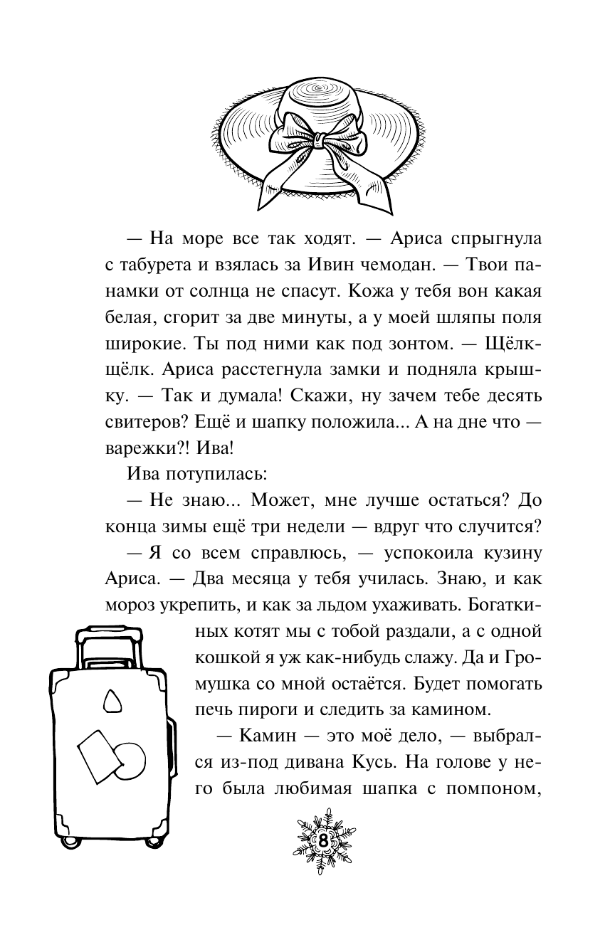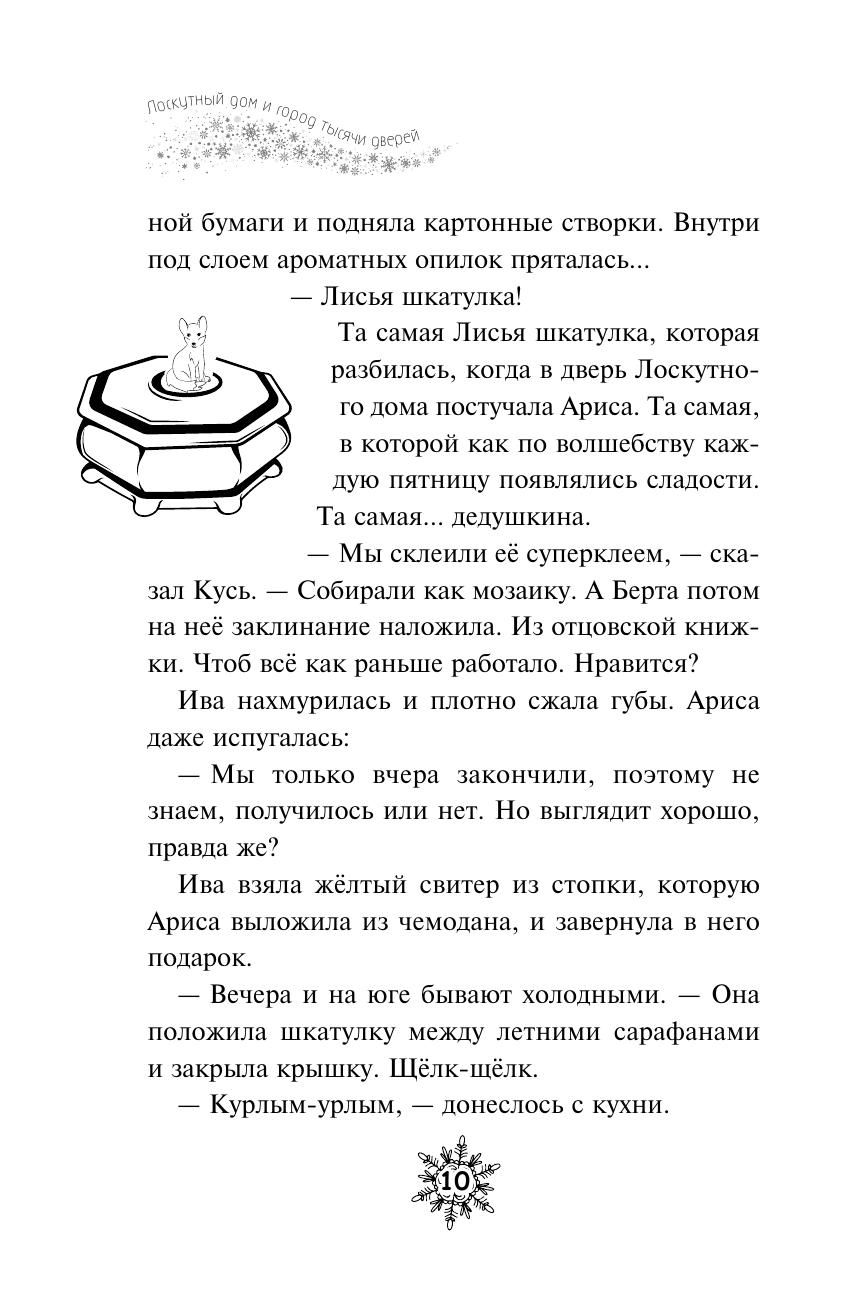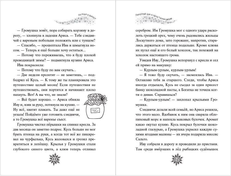 Эта история теплая, как лоскутное одеяло! Читать строго с чашечкой ароматного чая и кусочком пирога из духовки! Быть хранительницей зимы вовсе не просто! У Арисы столько дел, что некогда отдохнуть и минутку. И творожные пироги нужно испечь, и узоры на окнах проверить, и даже наполнить семечками все кормушки в городке. Да еще и сквозь сугробы появляется странное растение. Оказывается, это опасный туманник! И, говорят, тот, кто в полночь попадет в его облако, исчезнет навсегда. Неужели все жители уютного городка снова в беде? Главный посыл этой истории - не обязательно быть идеальным, важно быть собой! Книга прекрасно подойдет для чтения всей семьей: необычный сюжет, забавные герои, в которых каждый читатель узнает себя, много юмора. К тому же, историю дополняет чудесное оформление: белая бумага, уютные внутренние иллюстрации и цветные форзацы.