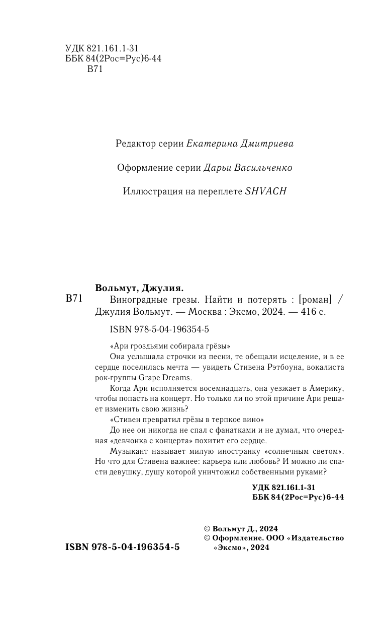 Виноградные грезы. Найти и потерять (Вольмут Джулия); Эксмо, 2024